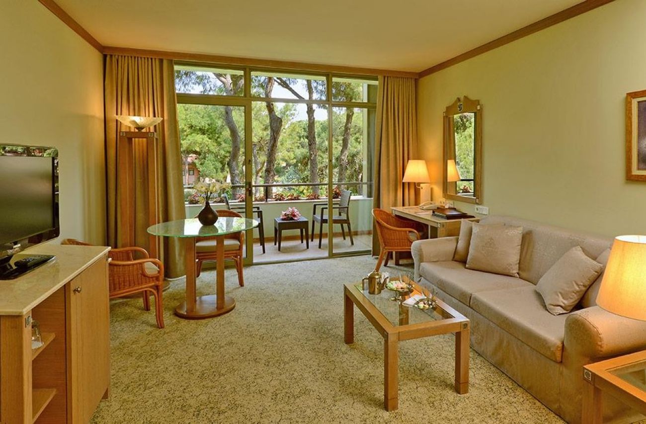 В стаите: Стаите са оборудвани със сейф, безплатен минибар с безалкохолни и алкохолни напитки (зарежда се ежедневно), ежедневно почистване и кошница с плодове, която се зарежда в деня на пристигане. Стаите разполагат с чехли, халат, сешоар, душ, климатик, Wi-Fi (срещу заплащане) и телевизор. Смяна на спално бельо три пъти седмично. Предлага се и рум-сървис (от 23:00 до 07:00 часа безплатно през лятото, 24 часа в денонощието за гости на вили и апартаменти с двойно легло King). Някои стандартни стаи имат френски балкон или тераса.