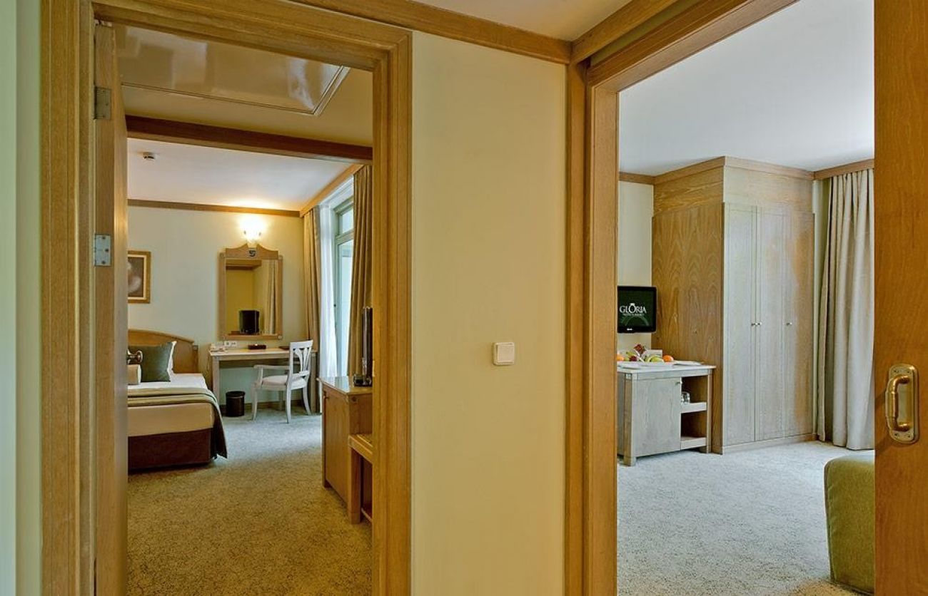 За децата: За семейства с деца хотелът предлага разнообразни забавления: Детски клуб Gogi (за деца на възраст 4–12 години) е отворен от 09:00 до 23:00 часа от 1 април до 31 октомври и от 10:00 до 21:00 часа от 1 ноември до 31 март. Тийнейджърски клуб „Гоги“ (за тийнейджъри на възраст 13–17 години) е отворен от 1 юни до 30 септември. Забавният джунгъл „Гоги“ (в курорта „Глория“) е на разположение от 1 май до 31 октомври за деца под 5 години (с родителски надзор). Можете също да използвате услугите на детегледачка (за деца от 1 година), да посетите открития и закрития детски басейн и зоопарка Gloria Mini Farm (в Gloria Serenity Resort), който е отворен от 09:00 до 23:00 часа. Бебешка храна се предлага 24 часа в денонощието с предварителна поръчка.