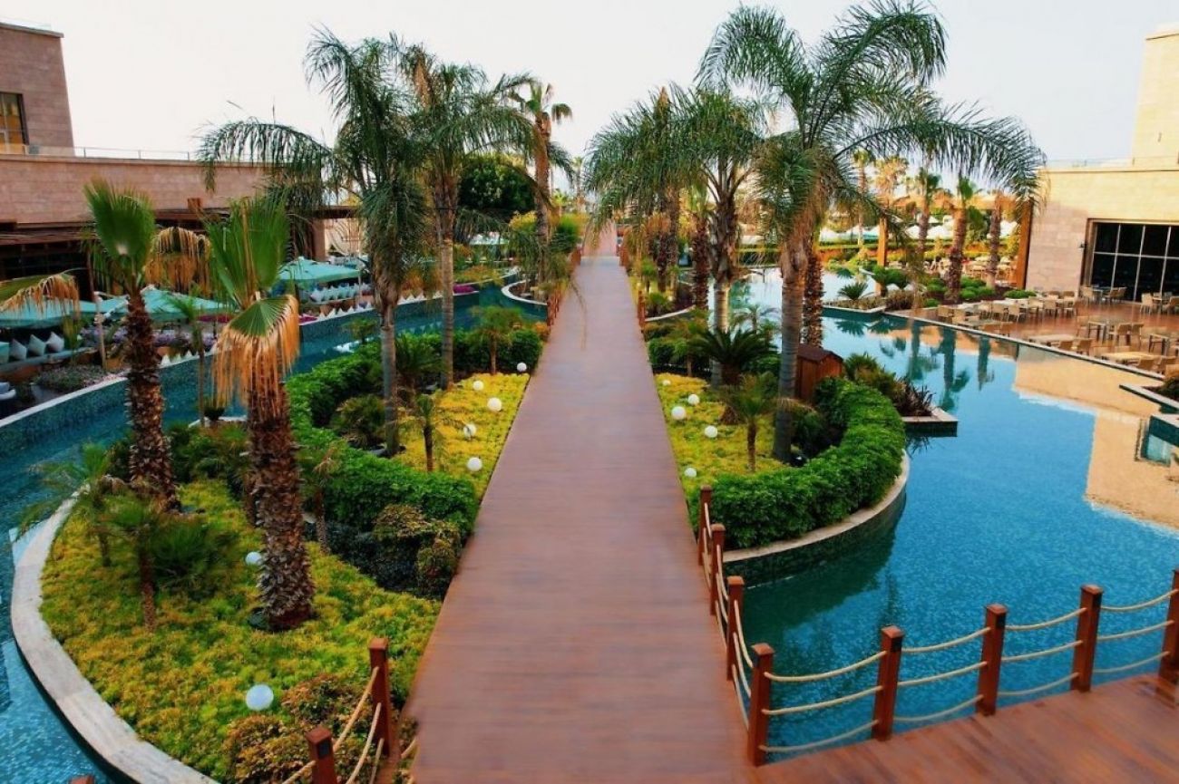 Разположение: Хотелът се намира на 27 км от летището в Анталия, на 35 км от центъра на града и на 2,5 км от селището Кадрие, на брега на морето. Построен е през 2013 г. върху територия с обща площ от 120 000 м2.