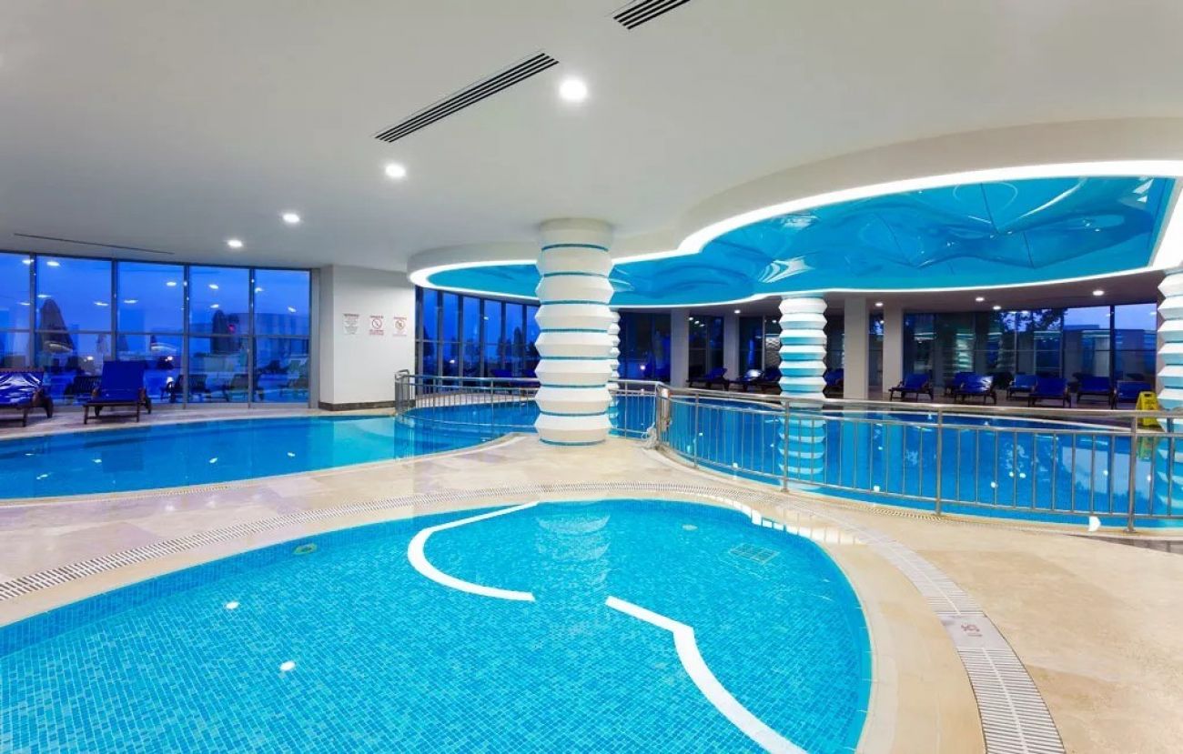 На територията на хотела: Основен ресторант, 3 ресторанта a-la-carte (турски, рибен, международен, с предварителна резервация, за едноседмичен престой едно безплатно посещение на един ресторант), 4 бара, дискотека, сладкарница, открит басейн, закрит басейн, дискотека (3 пъти в седмицата), лекарски кабинет, SPA център, фризьорски салон, 2 конферентни зали.