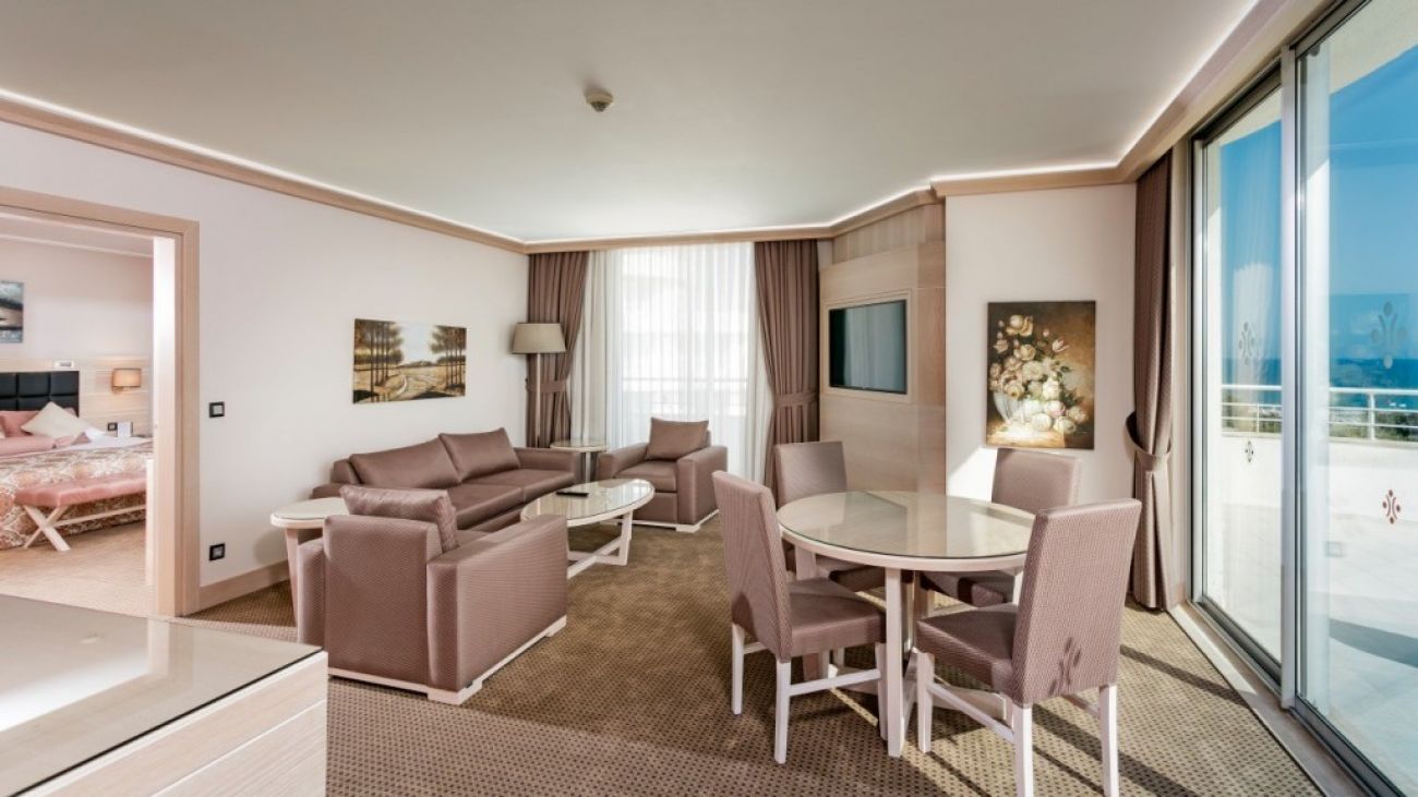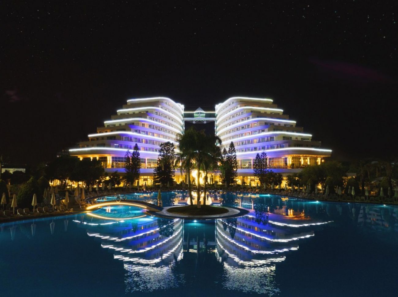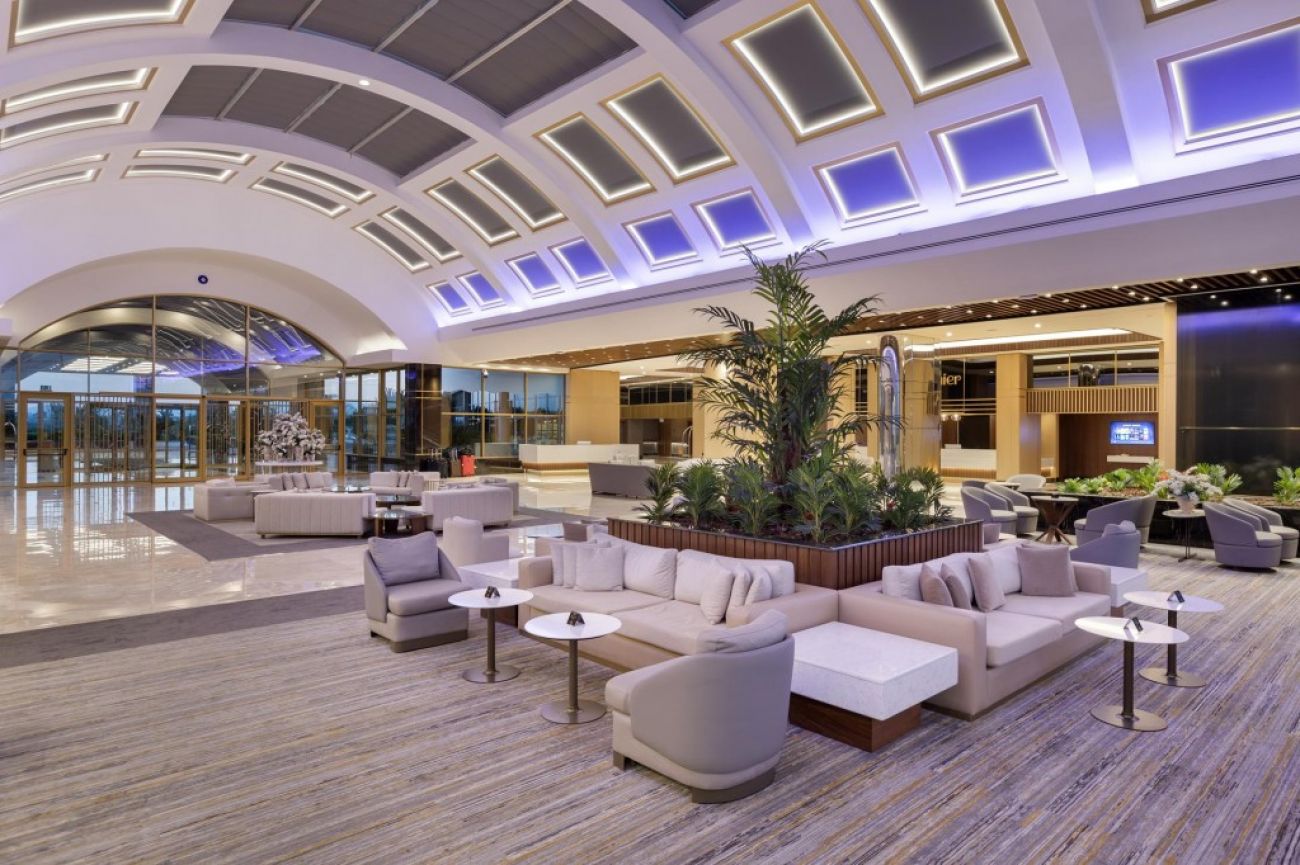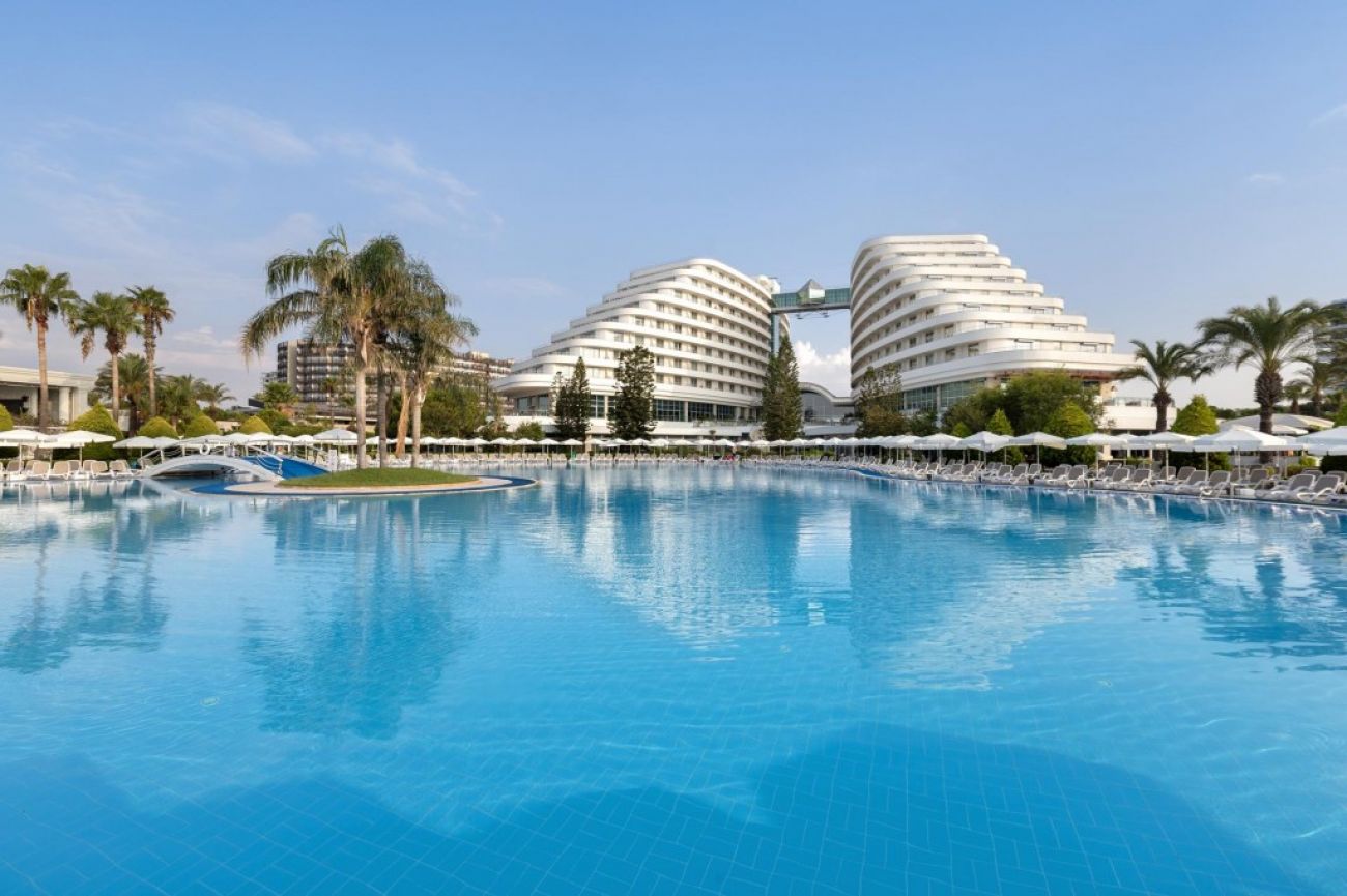 Разположение: Хотелът се намира на 10 км от летище Анталия, на 15 км от центъра на Анталия, на брега на морето. Построен през 2005 г. с обща площ от 135 000 м2. последно реновиран през 2016г.