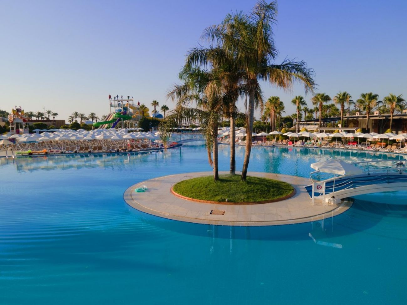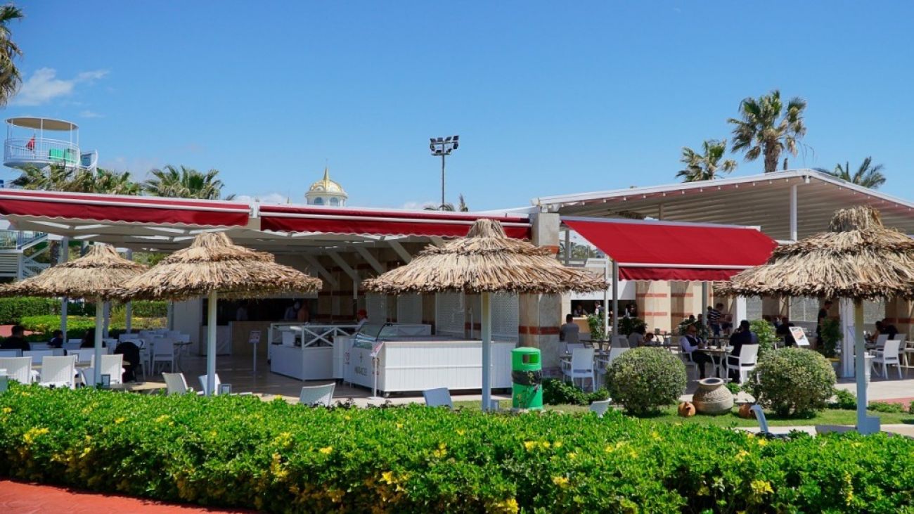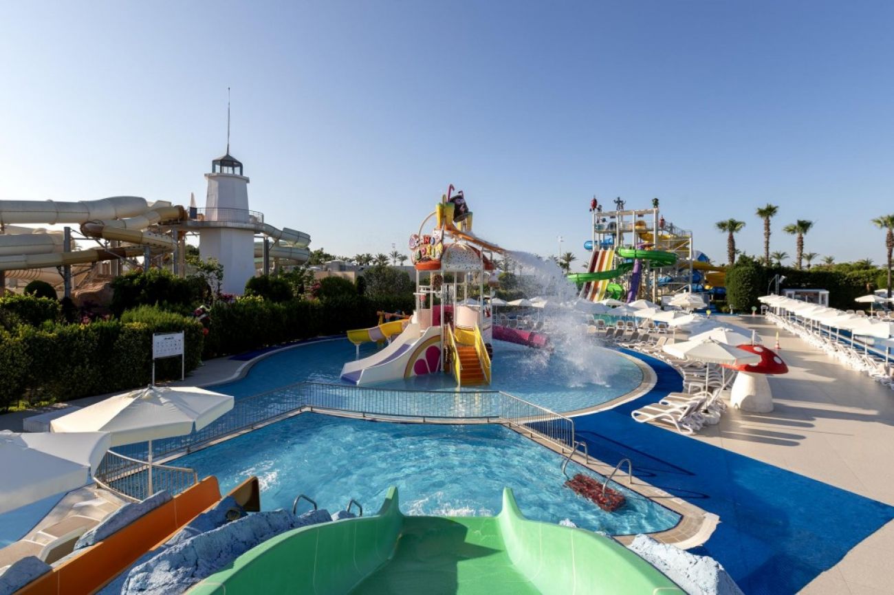 На територията на хотела: Основен ресторант, 4 а-ла-карт ресторанта (с предварителна резервацияи такса от 10 евро, мексикански, италиански, рибен и турски), 6 бара, открит и закрит басейн за възрастни, 3 водни пързалки, СПА център, турска баня, сауна, фитнес, джакузи, тенис на маса, тенис корт, баскетбол, дартс, анимация, мини-клуб, дискотека, конферентни зали.