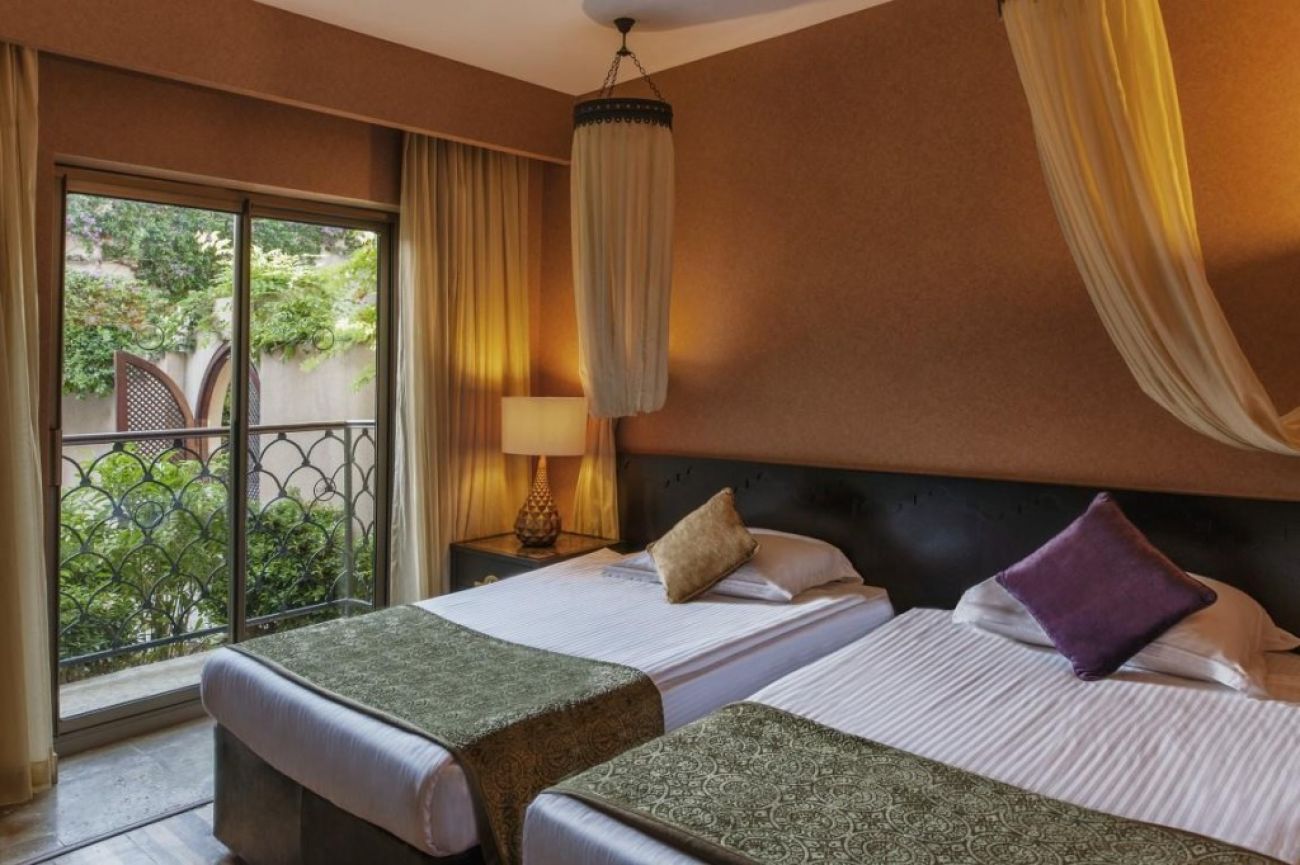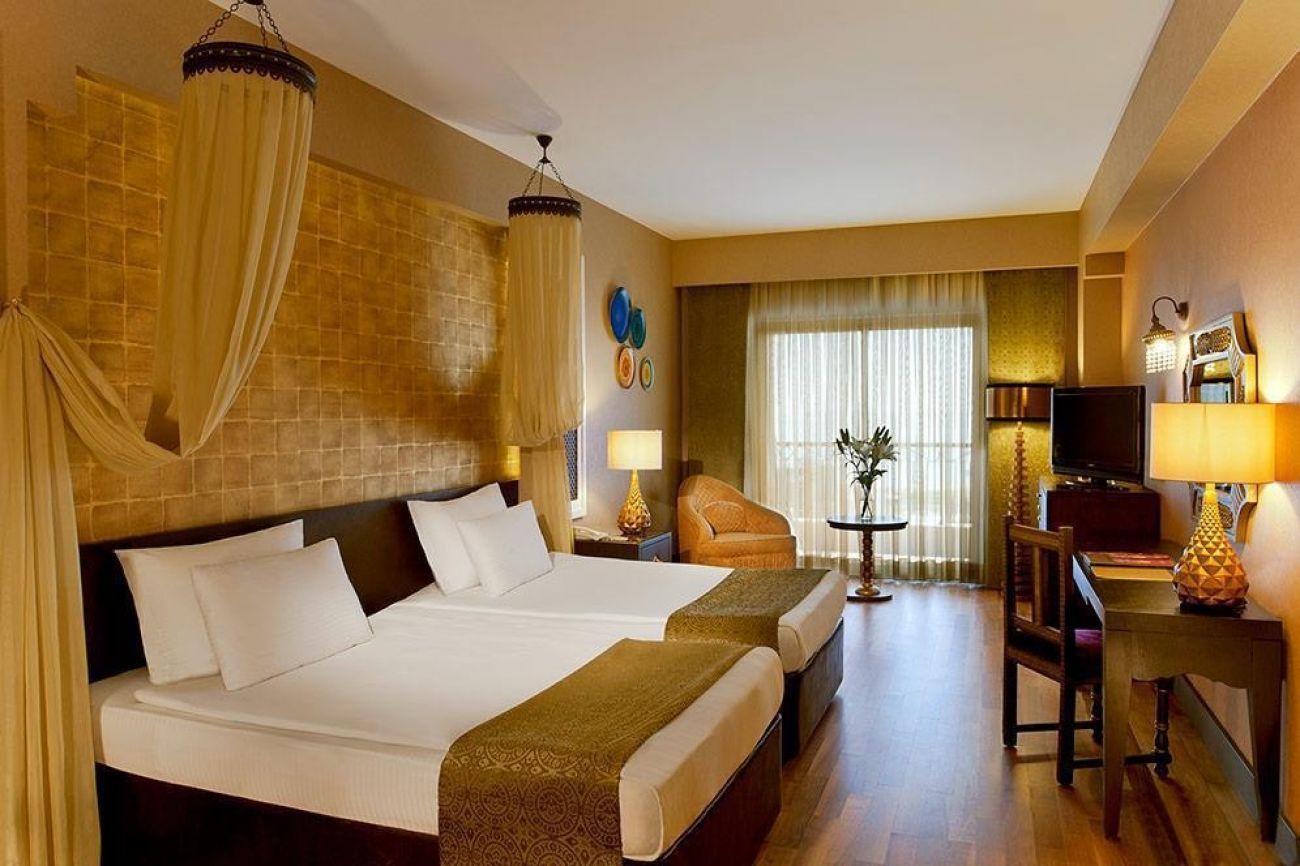 В стаите: Състои се от основна 5-етажна сграда с 6 панорамни асансьора, допълнителна 4-етажна сграда Анекс, 40 двустайни фамилни стаи (Family Room), 3-етажни стаи и 22 вили, разположени в градината на ВИП зоната. За удобство има 4 асансьора. Хотелът разполага с 546 стаи с изглед към морето, басейна, градината и планината.
