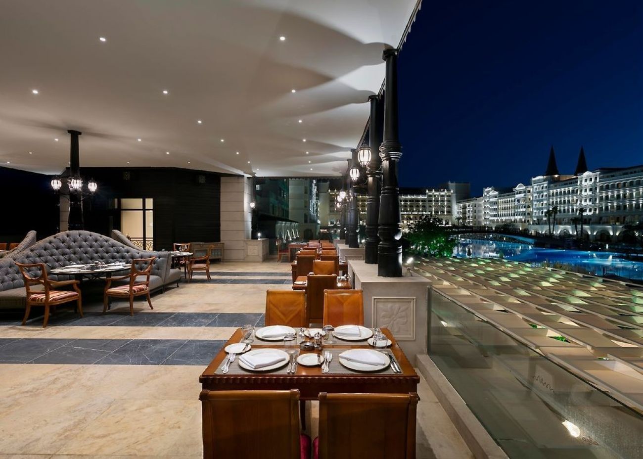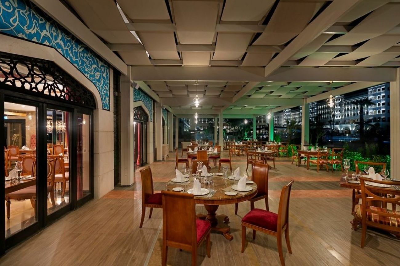 На територията на хотела: Основен ресторант, диетична храна, вегетарианска храна, 7 ресторанта а - ла - карт: японски, рибен (с предварителна резервация, платено) руски, турски, средиземноморски, тайландски, ресторант Brasserie - традиционна френска и американска кухня, с предварителна резервация с такса), 11 бара (един от които работи 24 часа), 2 открити басейна (един с морска вода във формата на подводен риф (Swim Reef) с екзотични риби, платено), 2 закрити басейна (един с морска вода, платено), кино, лекарски кабинет, SPA & Thalasso-център, фризьор, магазини, пералня, химическо чистене, 2 банкетни зали, 17 конферентни зали, бизнес център.