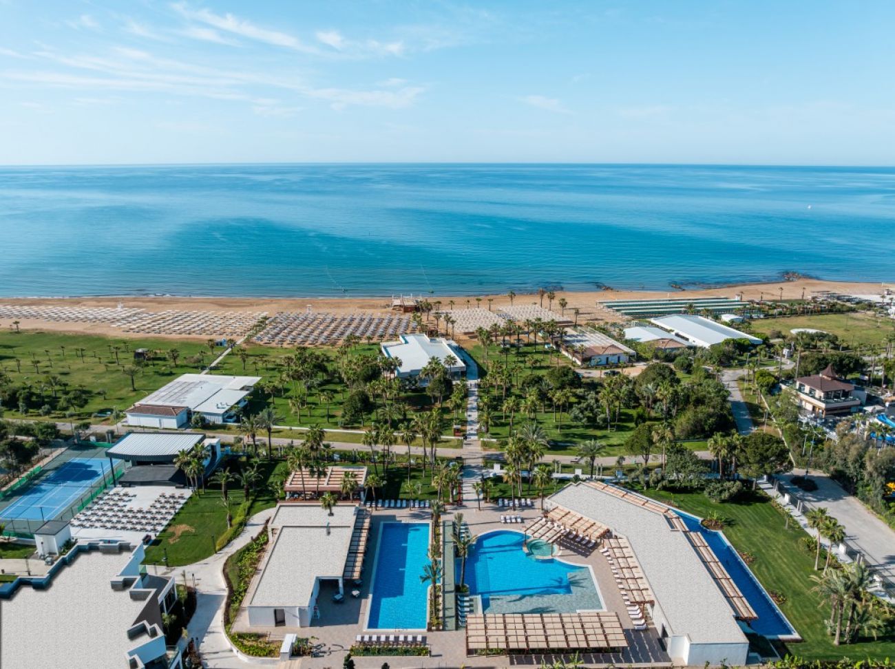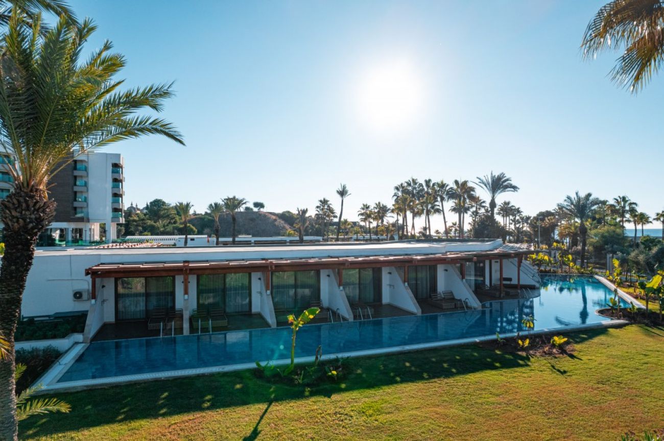 Разположение: Хотелът е изцяло реновиран и модернизиран през 2023 г.! Разположен на 55 км от летището на гр. Анталия, на 9 км от гр. Сиде, на 2 км от селището Чолаклъ, на брега на морето. Построен е през 1994 г. с обща площ от 50 000 м2.