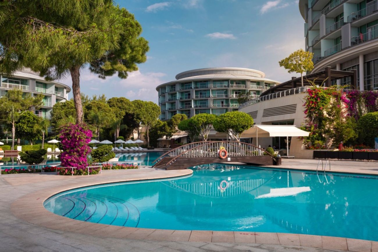 Разположение: Хотелът е разположен на 27 км от летището, на 35 км от центъра на гр. Анталия, на 4 км от селището Белек, на брега на морето. Построен е през 2007 г., обща площ 120 000 м2. Последният ремонт е извършен през 2018 г. (всички стаи и бани са обновени, инсталирана е система Smart Home, система за отваряне на врата от мобилен телефон, осветление за управление, ортопедични матраци).