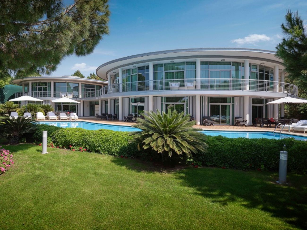 В стаите: Състои се от седем 4-и 5-етажни корпуса и четиринадесет 2-етажни вили и разполага с общо 600 стаи с изглед към градината. Стаите са оборудвани с централна климатизация, мини-бар (безалкохолни напитки, бира, ядки, вафли, чипс - ежедневно зареждане, безплатно), интерактивна телевизия, LCD32 телевизор, сейф (безплатно), телефон с директно избиране, Wi-Fi (безплатно), баня душ и вана, сешоар, дъска за гладене и ютия, халати за баня и чехли, балкон, сет за кафе и чай, ябълки и вино (в деня на пристигане). Почистване на стаите - ежедневно, смяна на спално бельо - ежедневно.