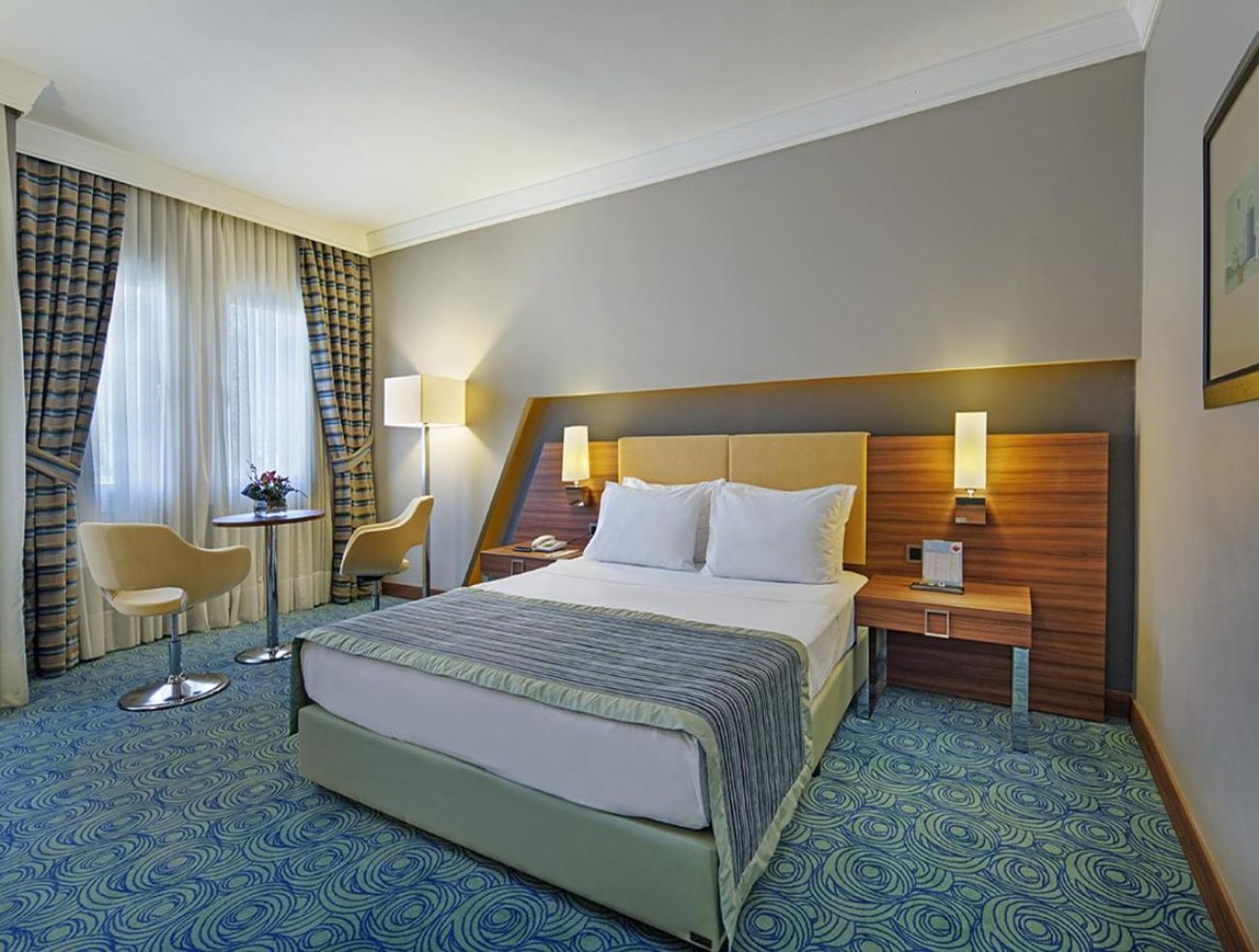 Хотелът разполага с 310 стаи, от които 203 стандартни (23 кв.м), 77 разширени стаи (30 кв.м) и 24 апартамента (35 кв.м), 3 стаи за хора с увреждания, всички оборудвани с климатик, телевизор, телефон, баня с душ/вана, сешоар, минибар (платен), сет за чай/кафе, сейф (платен), балкон или тераса. Почистване на стаите - всеки ден.