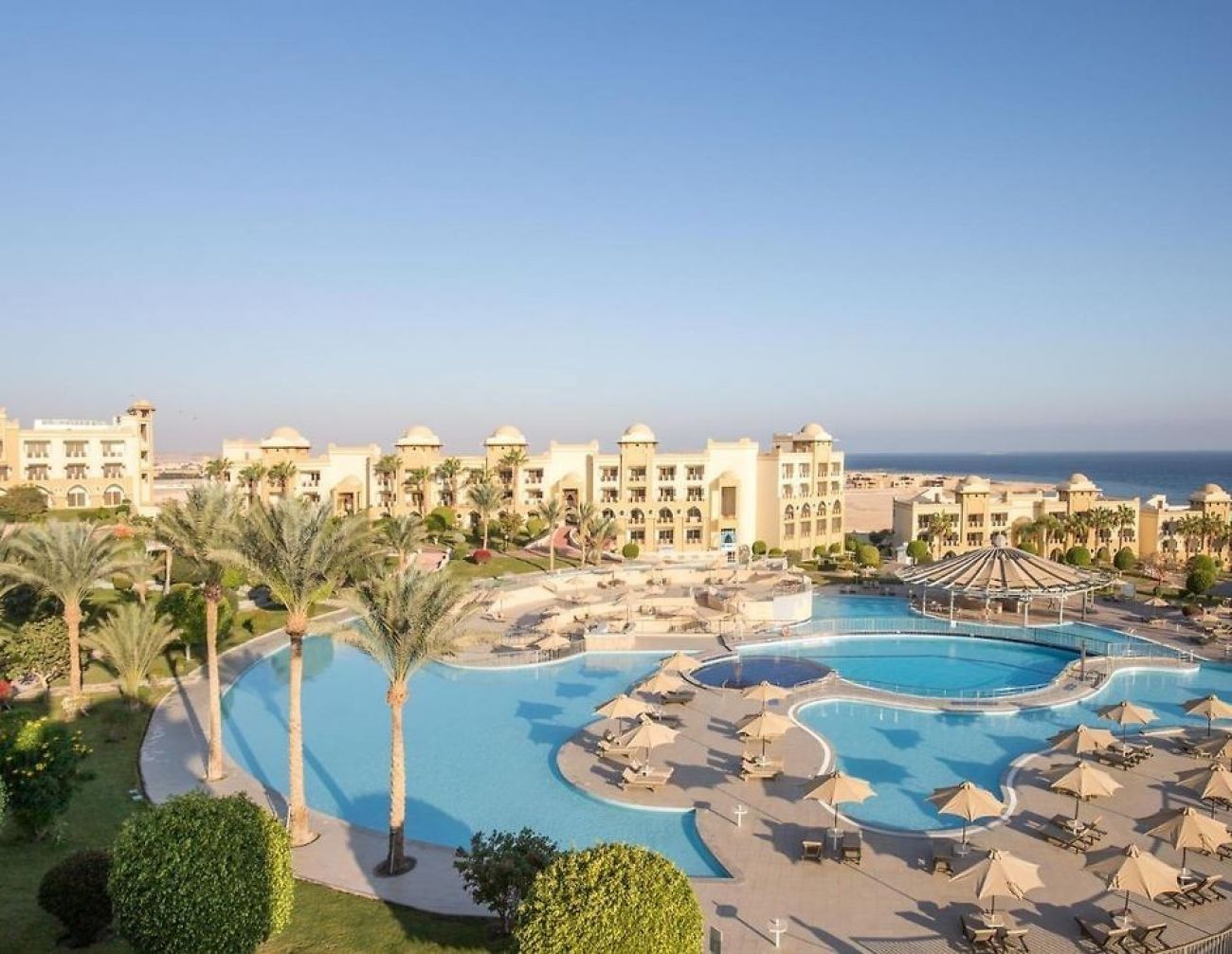 Разположение: Намира на 20 км. от летище Хургада, на 30 км. от курорта Хургада, в района на Макади бей, на брега на морето. Построен през 2007 г. в марокaнски стил, с обща площ 220 000 м2.