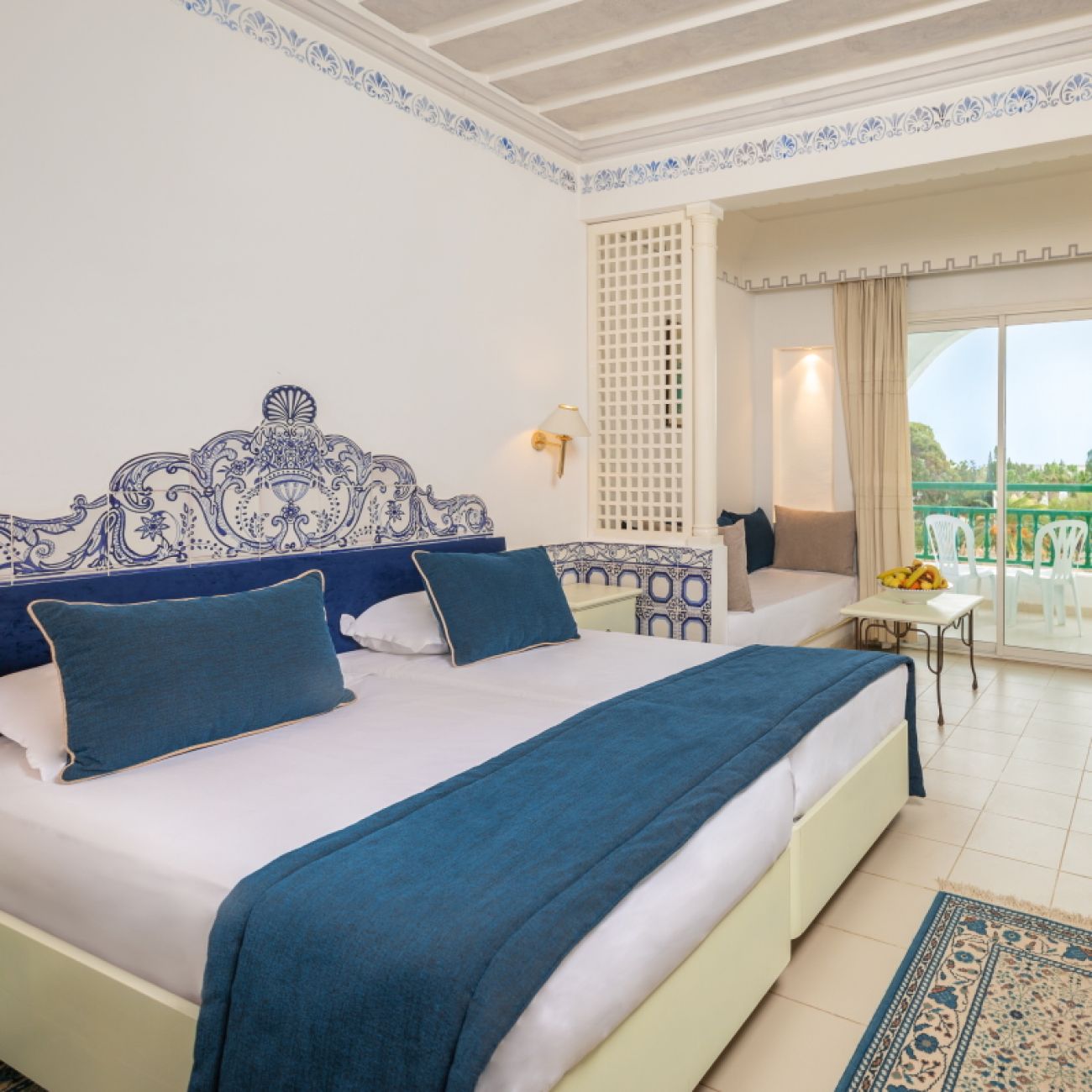 Хотелът разполага с 210 стаи, разположени в основна сграда и в бунгала. Всички стаи разполагат с балкон или тераса, климатик, телевизор, баня или душ, сейф (безплатно). Почистване на стаите - ежедневно.