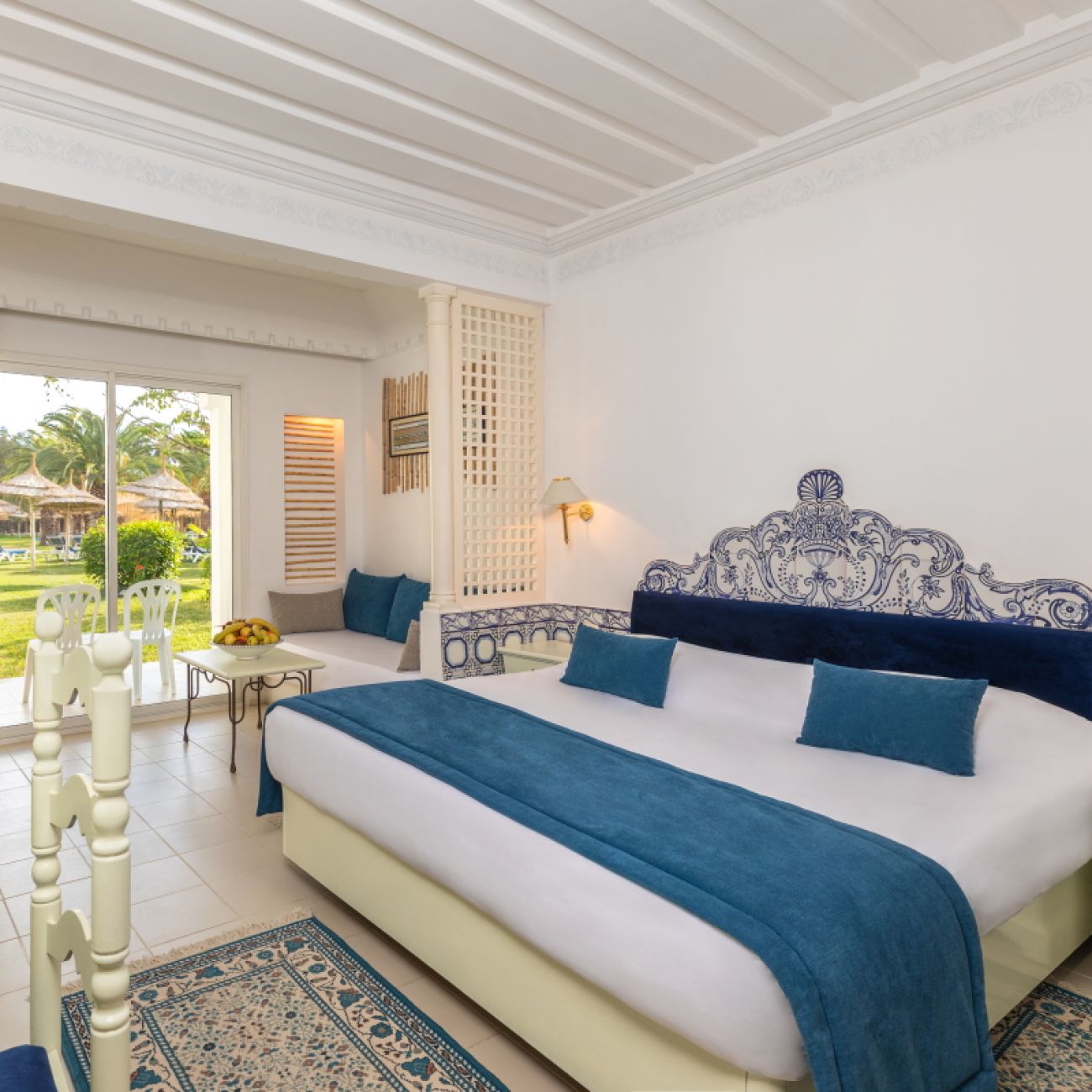 Основен ресторант Les Zinnias, а ла карт рестоирант Tunisiano с тунизийска кухня (платен, едно безплатно помещение на престой след предварителна резервация), лоби бар, бар басейн, плажен бар, диско бар (платен), мавританско кафене, анимация, аеробика, боча, мини голф, тенис корт, 2 външни басейна, единият от които с водни пързалки, сувенирен магазин, 24 часова рецепция.