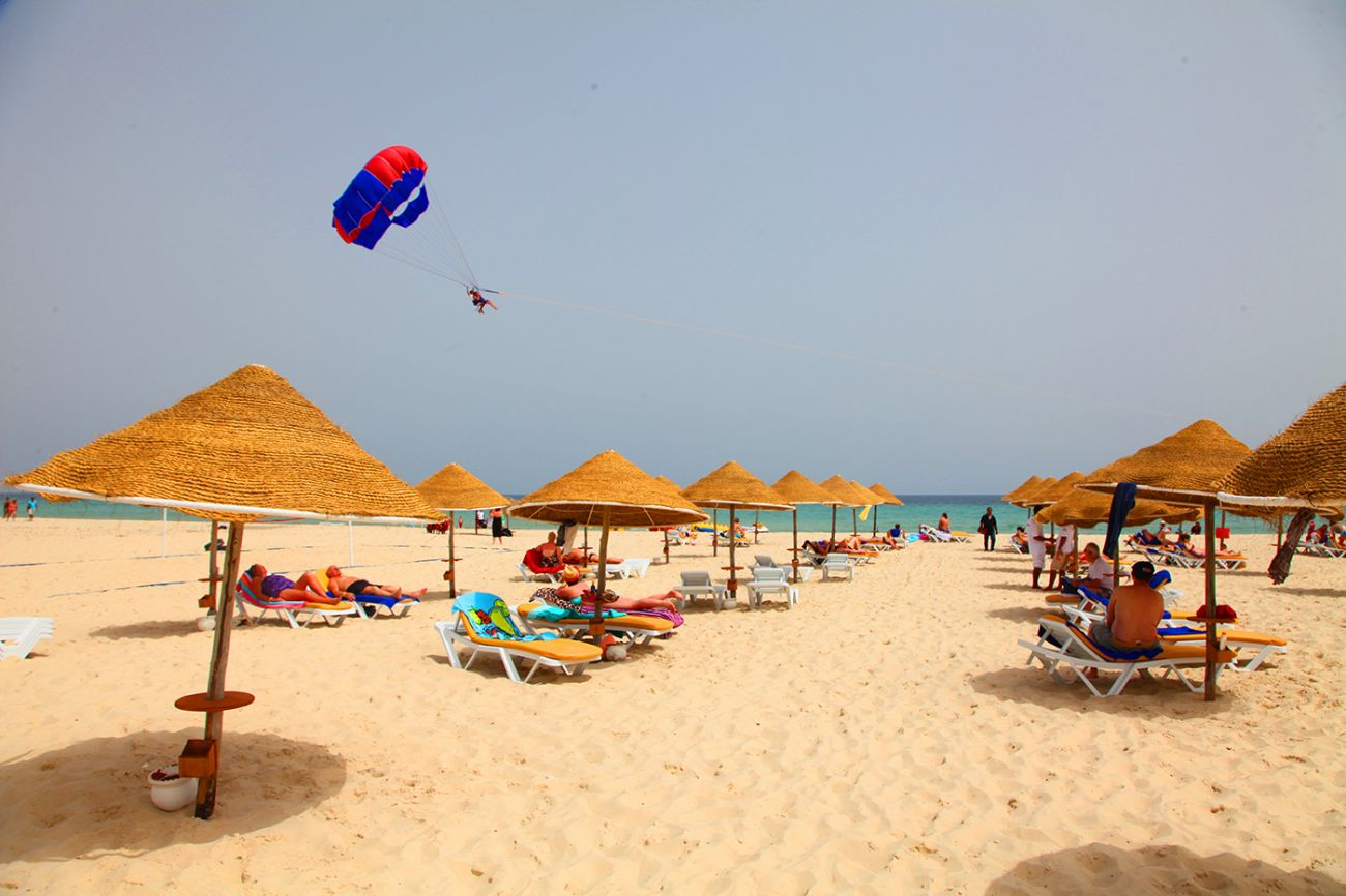 Собствен, пясъчен. Чадъри и шезлонги на плажа и при басейна - безплатно. Плажни кърпи и матраци – срещу заплащане.