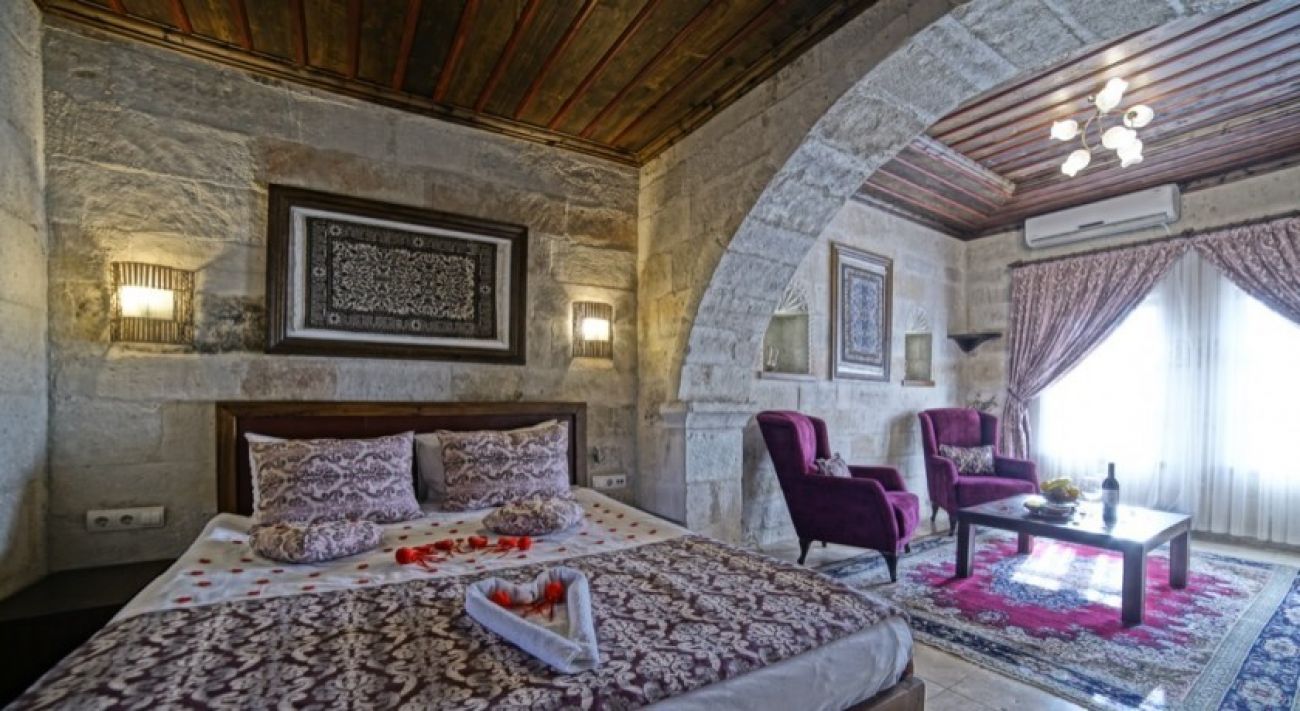 Стаи: Хотелът разполага с 18 уникални стаи издълбани в скалите и разполагат с модернизирани удобства и мебели. Стаите са оборудвани с климатик и подово отопление, минибар, LCD телевизор със сателитни канали, собствени бани с душ, някои от стаите разполагат и с вана, безплатни тоалетни принадлежности, сешоар.