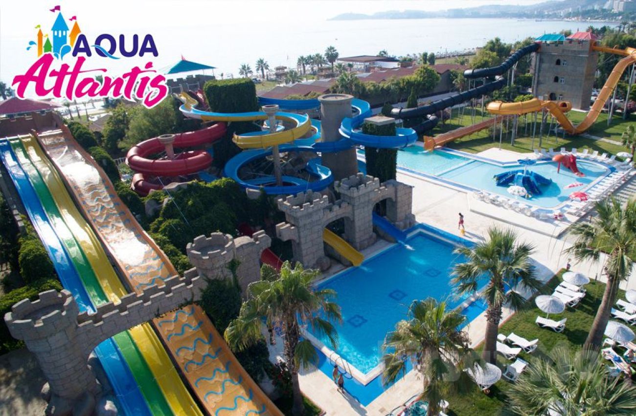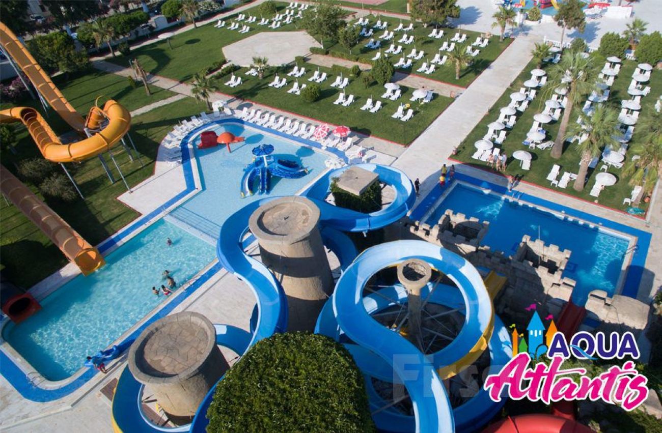 Хотелът разполага с основен ресторант, а-ла карт ресторант, пинг понг, волейбол, баскетбол, анимация, Wi-Fi интернет на територията на хотела. Гостите на хотела могат да се забавляват в Аква Атлантис парк, на чиято територия от 45 000 кв.м. са разположени: 4 басейна, 2 детски басейна, 17 пързалки.