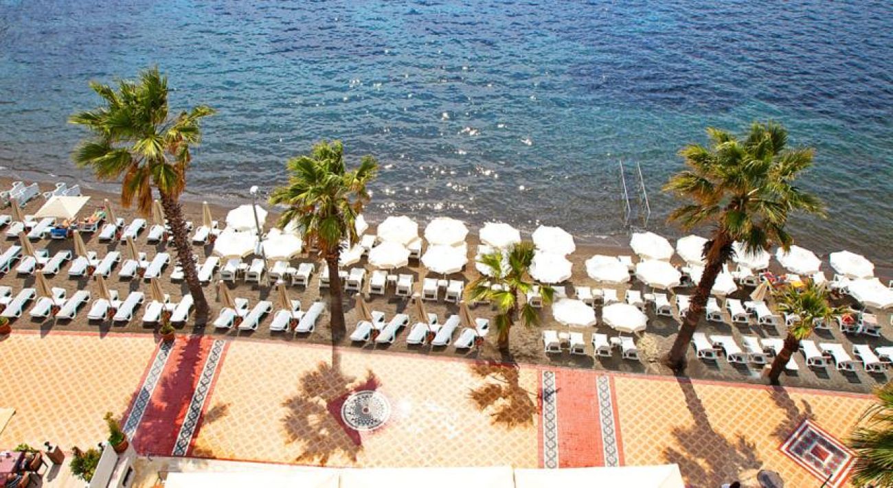 Собствен пясъчно-чакълест плаж. На плажа и при басейна - чадъри, шезлонги, матраци - безплатно. Плажни кърпи - няма.