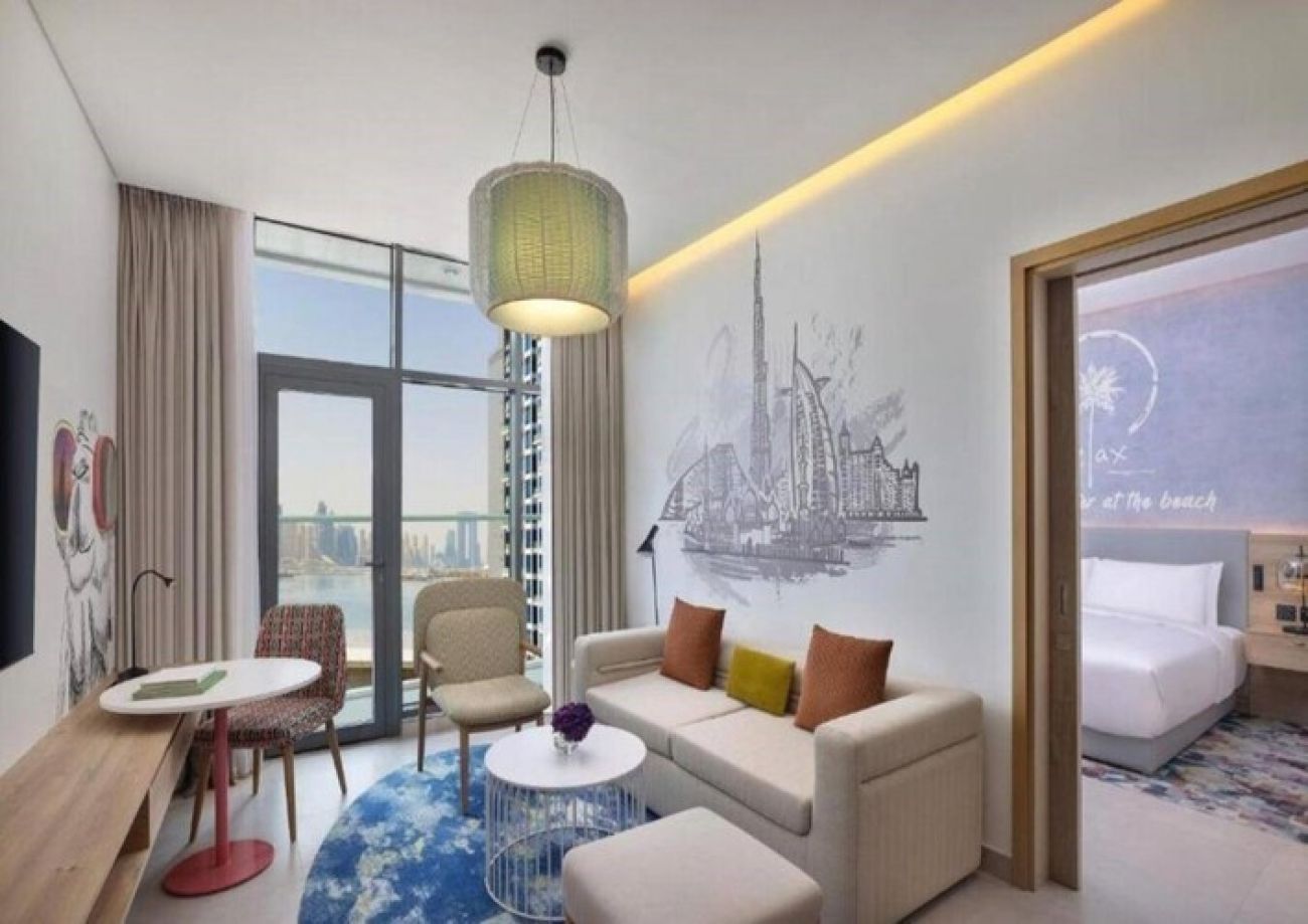 Стилен хотел с открит басейн се намира на Палм Джумейра, близо до търговския център Nakeel и крайбрежната алея The Pointe с фонтани.