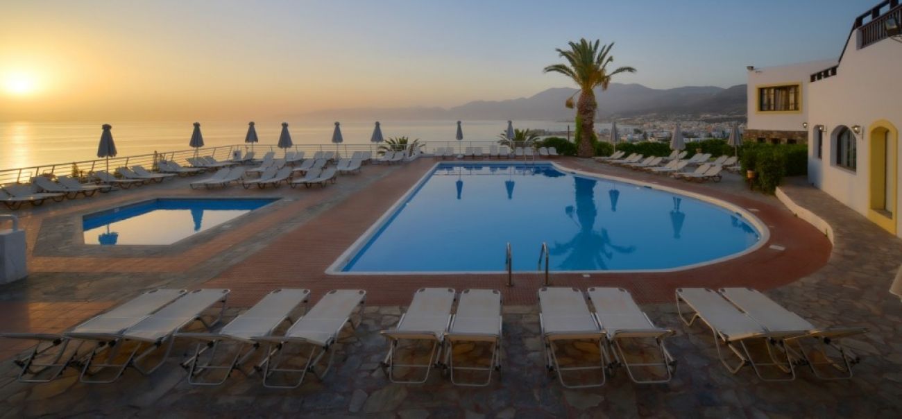 Хотелът с красива зелена площ и панорамна гледка към морето наподобява традиционно критско село. Разнообразна вечерна програма срещу допълнително заплащане. Препоръчваме го както за спокойна семейна почивка, така и за романтично бягство за двама. Гостите с ограничена подвижност и семействата с малки деца трябва да имат предвид, че хотелът е разположен на хълм и до плажа се стига от планината.