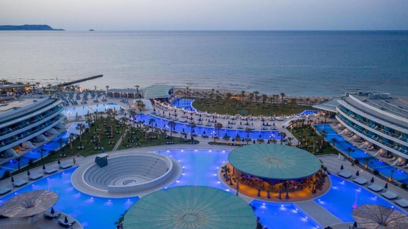 Стилен хотел с модерна архитектура е разположен точно на брега на морето. Гостите ще намерят ергономични стаи, развита инфраструктура и много забавления за цялото семейство.