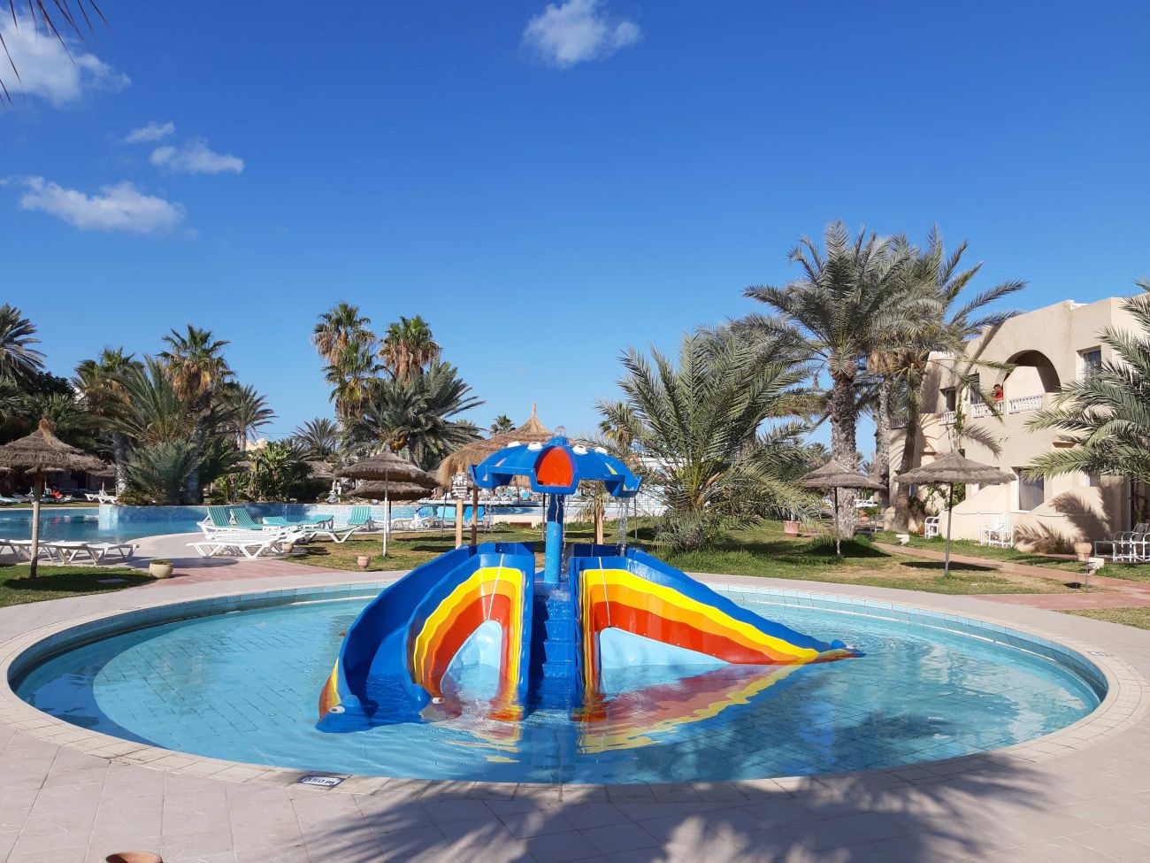 Основен ресторант, 2 а-ла-карт ресторанта (тунизийски и марокански – срещу заплащане/с предварителна резервация, съгласно концепцията на хотела/1 безплатно посещение на 1 от ресторантите при минимум 7 нощувки), 3 бара, мавританско кафене (срещу заплащане), открит басейн, 3 водни пързалки, закрит басейн (от 01.11 до 31.03), закрит басейн с морска вода в Таласо центъра (срещу заплащане), 2 конферентни зали и заседателна зала, магазин, обмяна на валута, денонощна рецепция, Таласо център.
