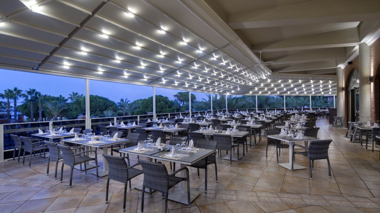Хотелът разполага с основен ресторант, вегетарианско меню, 4 a-лa-карт ресторанта (средиземноморски, китайски, интернационален, турски - с предварително записване, за времето на престоя, едно посещение във всеки ресторант - безплатно), 7 бара (един от тях е отворен 24 часа), 2 открити басейна (2300 и 1400 кв.м.), 2 закрити басейна, водни пързалки, анимация, амфитеатър, кино, жива музика, дискотека (безплатно).