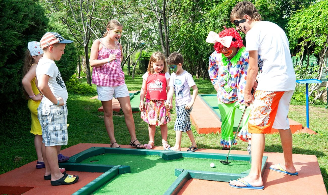 Открит и закрит детски басейн, детска площадка, мини клуб (4-12г), мини диско, детска анимация, детска количка (под наем).