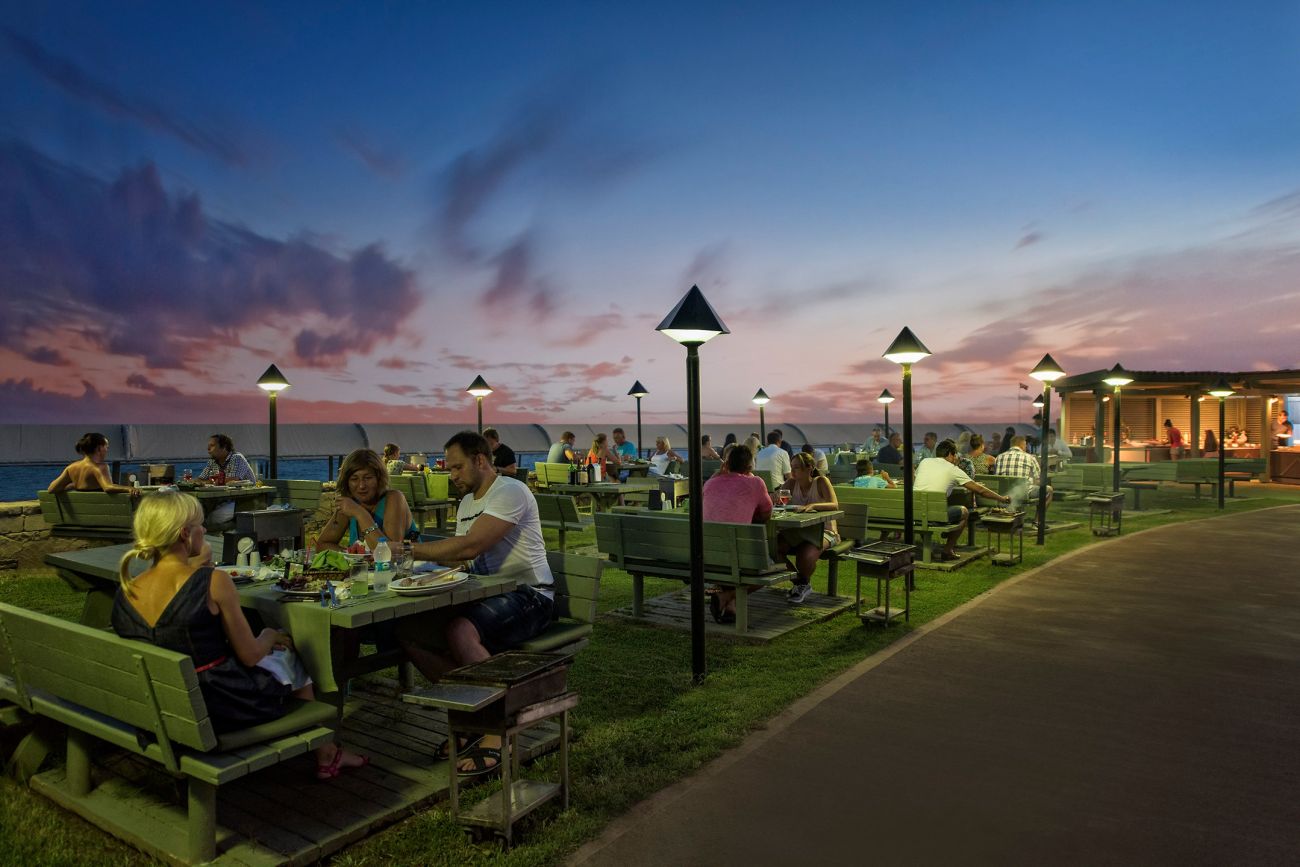 Сауна, турска баня, парна баня, солна стая, фитнес, тенис на маса, плажен волейбол, баскетбол, аеробика, йога, водна гимнастика, тематични партита, жива музика, анимация, настолни игри, Wi-Fi (на цялата територия).