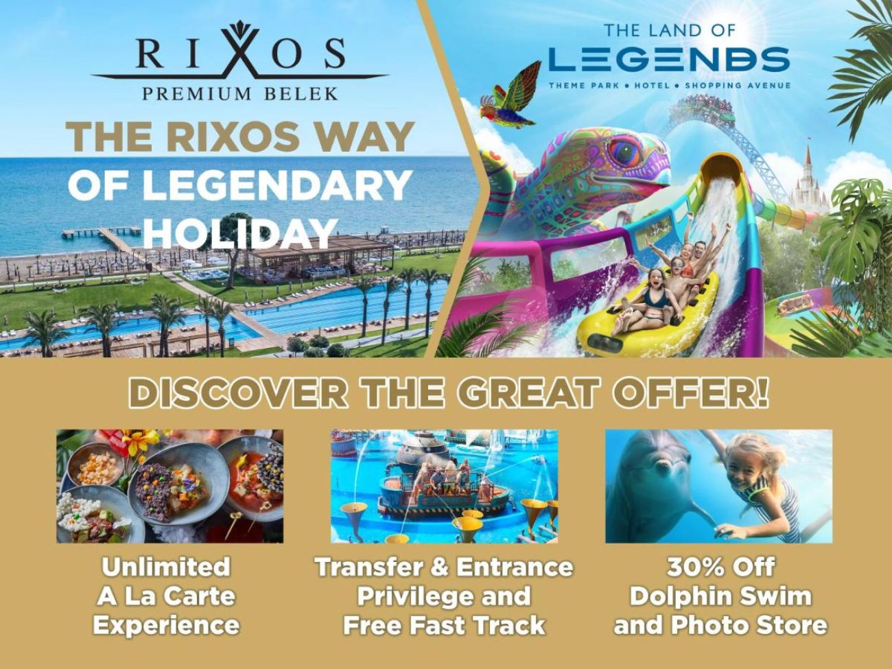 Детски открит и закрит басейн, детска площадка, мини клуб (4-7г.), джуниър клуб (8-11г.), тийн клуб (12-16г.), детска рецепция, детски ресторант, детски чехли и халат, детска козметика за баня, водни пързалки, мини диско, музикални игри. Посещение до парка The Land of Legnds, където има аквапарк и лунапарк, до него се стига с шатъл.