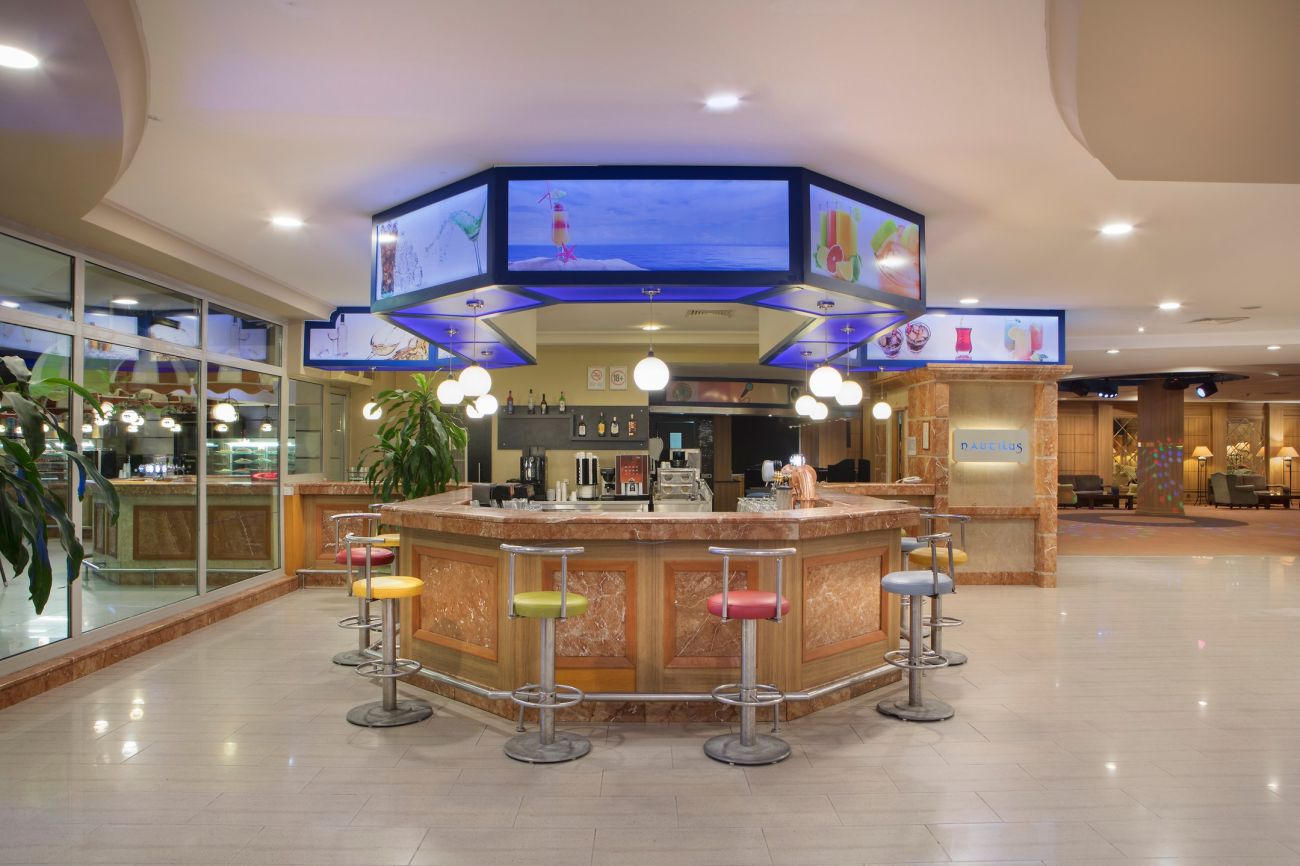 Сауна, турска баня, фитнес, интернет, паркинг, анимация, дартс, баскетбол, плажен волейбол, аеробика, водна аеробика, минибар, чадъри и шезлонги, музикални партита на плажа, отопляем открит басейн с морска вода (през зимния сезон).