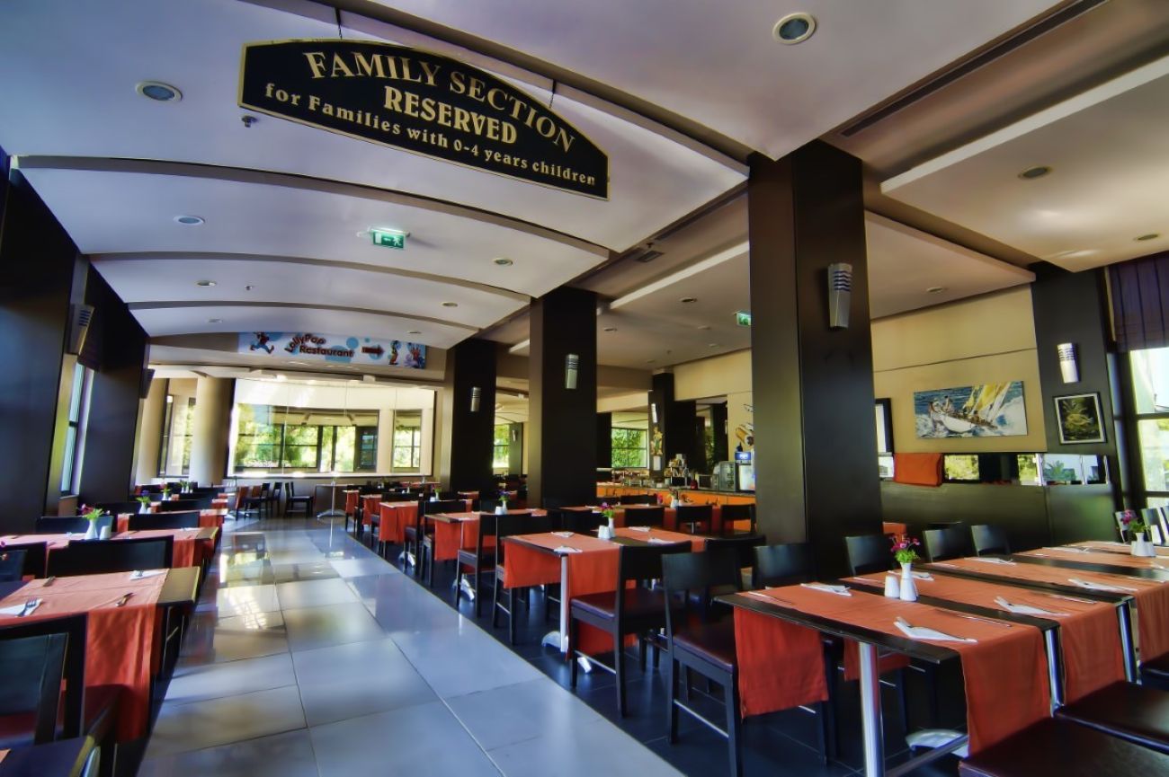 Стаи Main Building: 148 Standard rooms (гледка градина/басейн - 30 м2), 8 Family rooms (гледка градина, 2 спални, 1 баня - 45 м2), 10 Dublex rooms (разположени на 2 етажа), Connection Rooms, 7 Jacuzzi Suites (гледка море, спалня, хол, джакузи – 80 м2), 2 Suites.