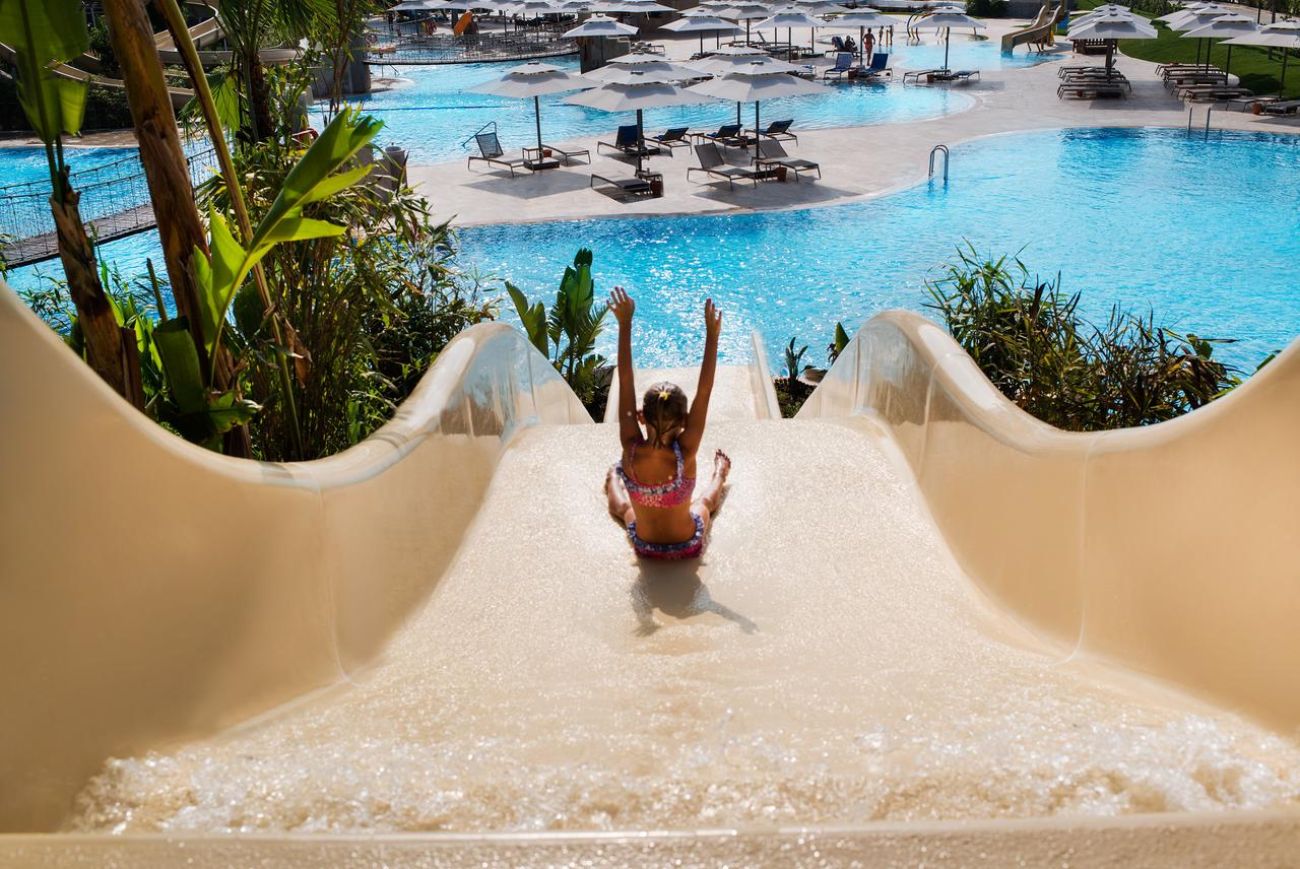 Открит и закрит басейн - отопляеми, детски бюфет, аквапарк, открита и закрита детска площадка, мини клуб (4-12г), тийн клуб (13-17г.), детско кино, лего стая, мини диско, тенис на маса.
