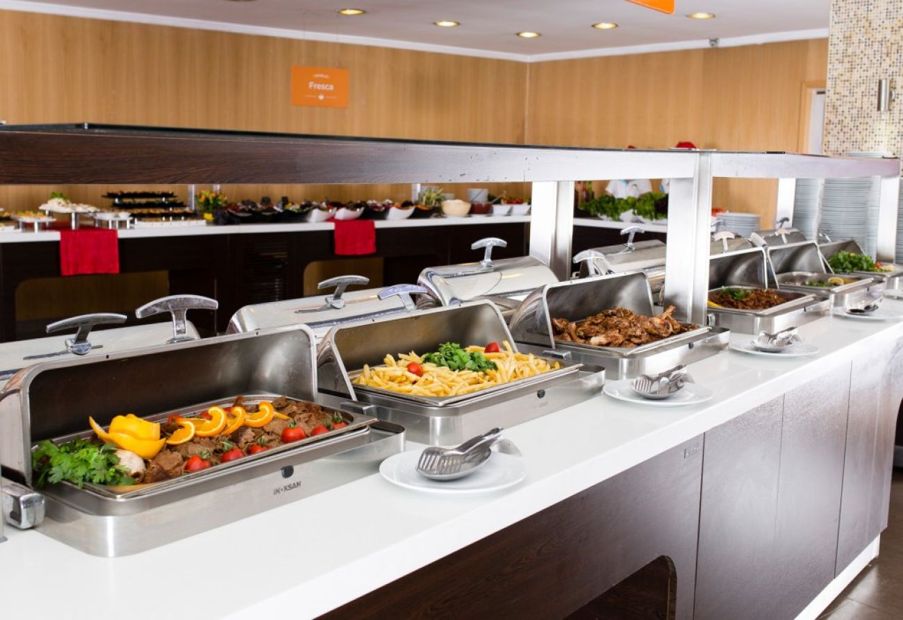 Хотелът предлага основен ресторант на открито с тераса и капацитет 500 човека, сервиращ международна кухня и детско меню. Бар при басейна (10:00 – 18:30, безплатно), Диско-бар (денонощно, срещу заплащане).