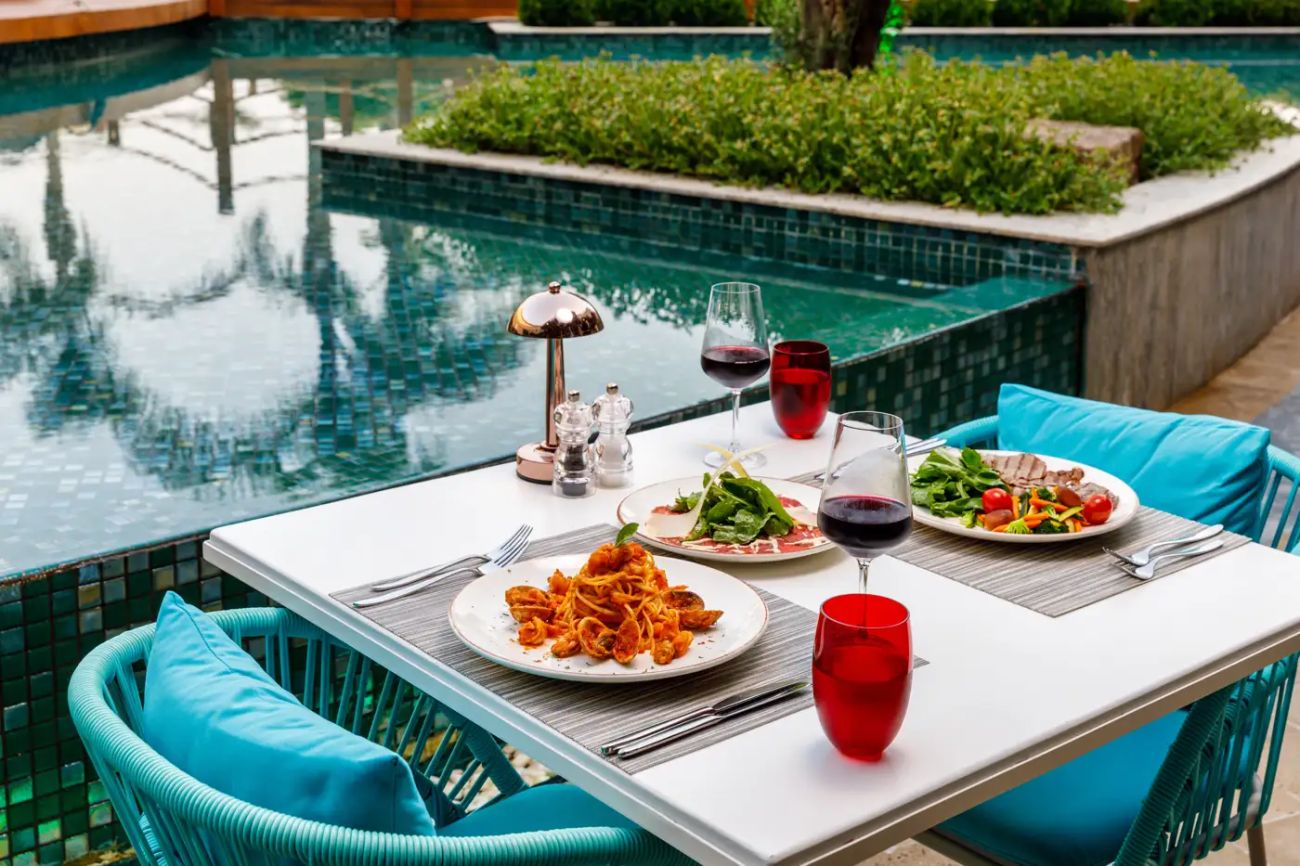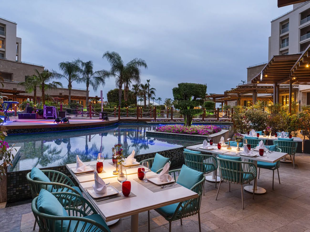 Хотелът разполага с oсновен ресторант, 5 а-ла-карт ресторанта (Ливански, Италиански, Азиатски, Интернационален, Средиземноморски), 9 бара, 2 закрити басейна, 2 открити басейна, 2 детски басейна.