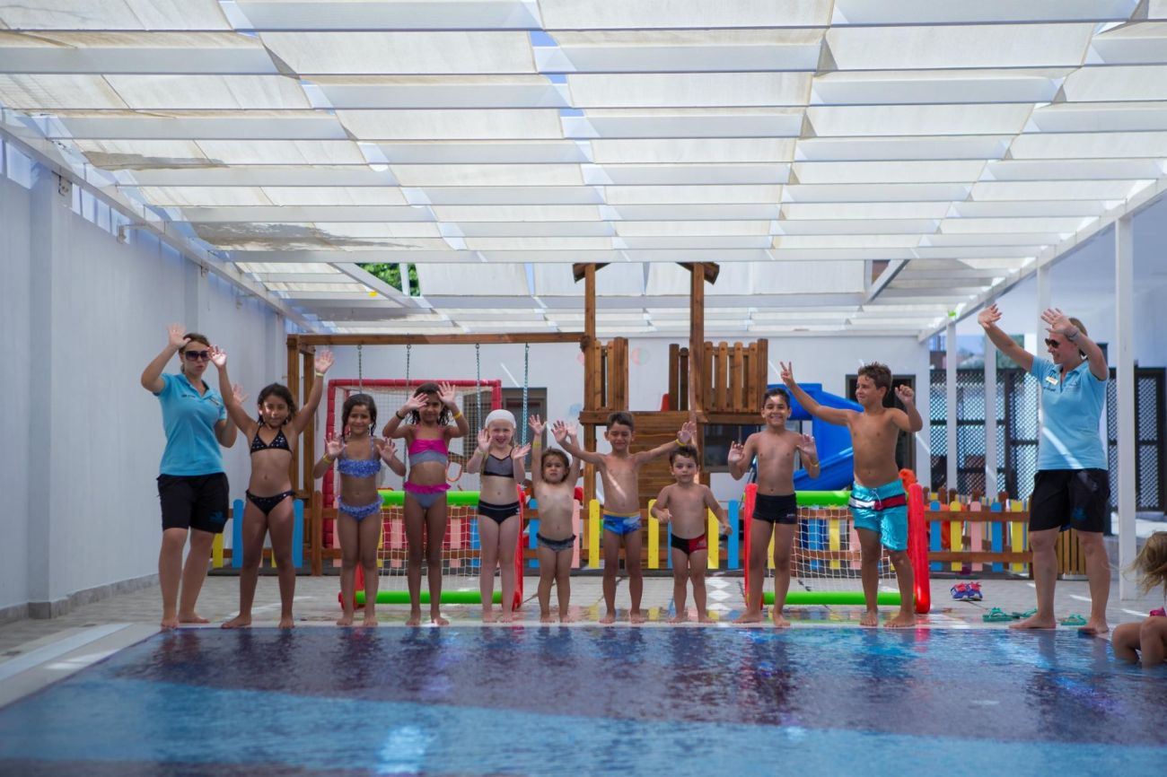 4 детски басейна, мини клуб (4-12г.), мини диско, детско меню, детска площадка, детегледачка (платено).