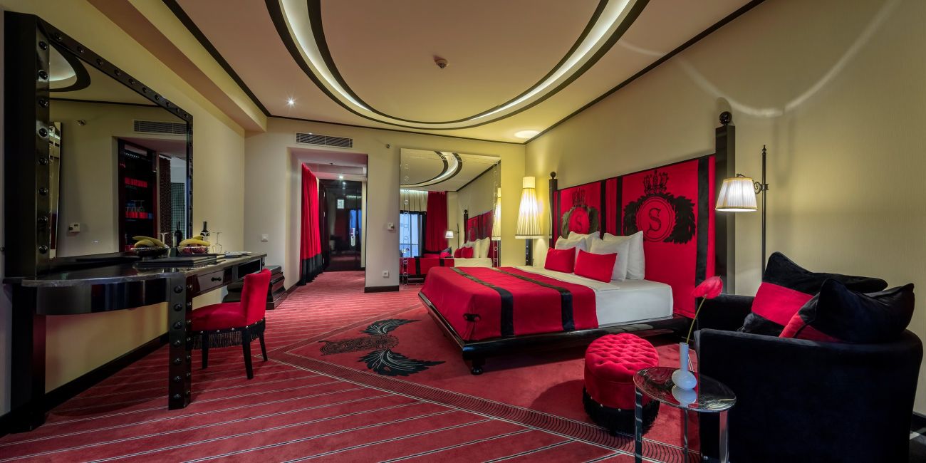 204 Luxury room (стаи с френски балкон - 4 от които за инвалиди - 45-62 м2), 55 Deluxe room (70-75 м2), 36 Superior room (с джакузи на балкона - 124 м2), 100 Family room (2 спални, 1 баня 37-43 м2), 8 Suite room (1 спалня, хол, 1 баня - 124 м2), 10 Premium Suite room (1 спалня, хол, 1 баня, джакузи на балкона - 160 м2), 4 Executive Residence Room (2 спални, хол, 1 баня - 186 м2), 2 King Residence Room (2 спални, хол с кът за хранене, 2 бани - 450 м2), 1 Presidential Residence Room (2 спални, хол с кът за хранене, 2 бани - 500 м2).