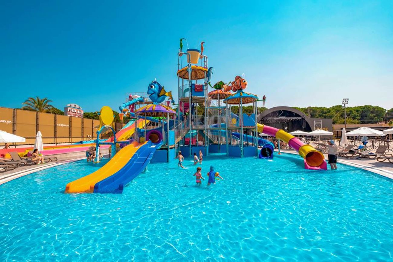 Детски ресторант (IXY Planet), детски басейн, детски басейн с пързалки, детски закрит басейн, анимация, мини клуб (0-8), мини дискотека.