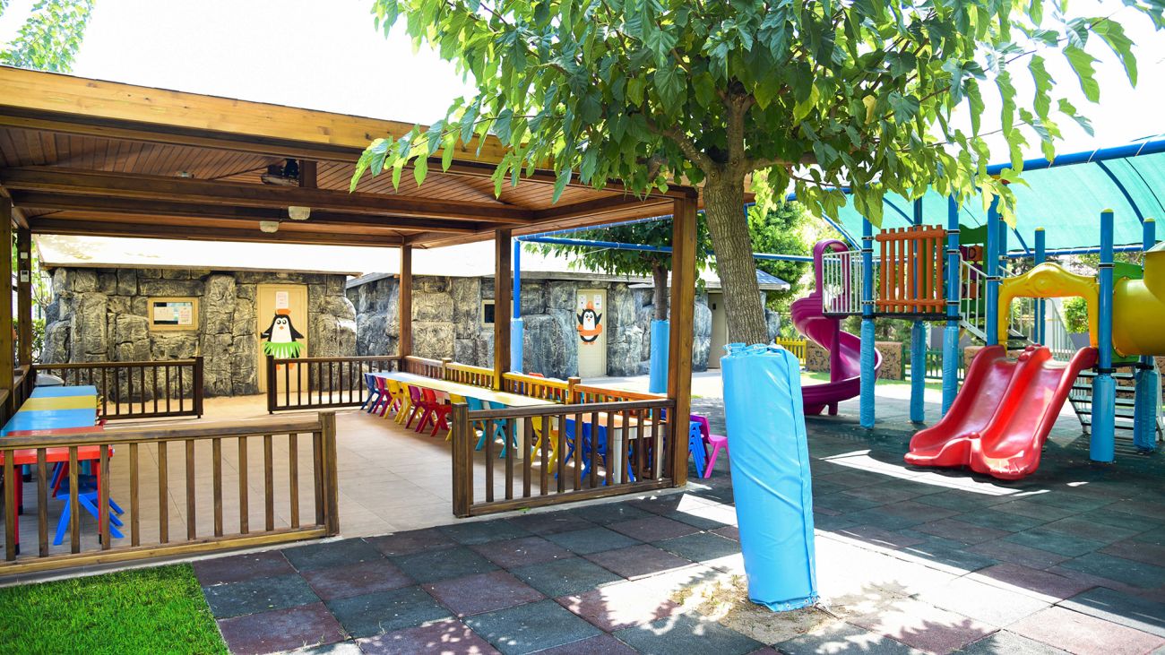 Детско меню, детска зона за игра, мини клуб (4-12 г.), 3 детски басейна, водни пързалки, мини дискотека, анимация.