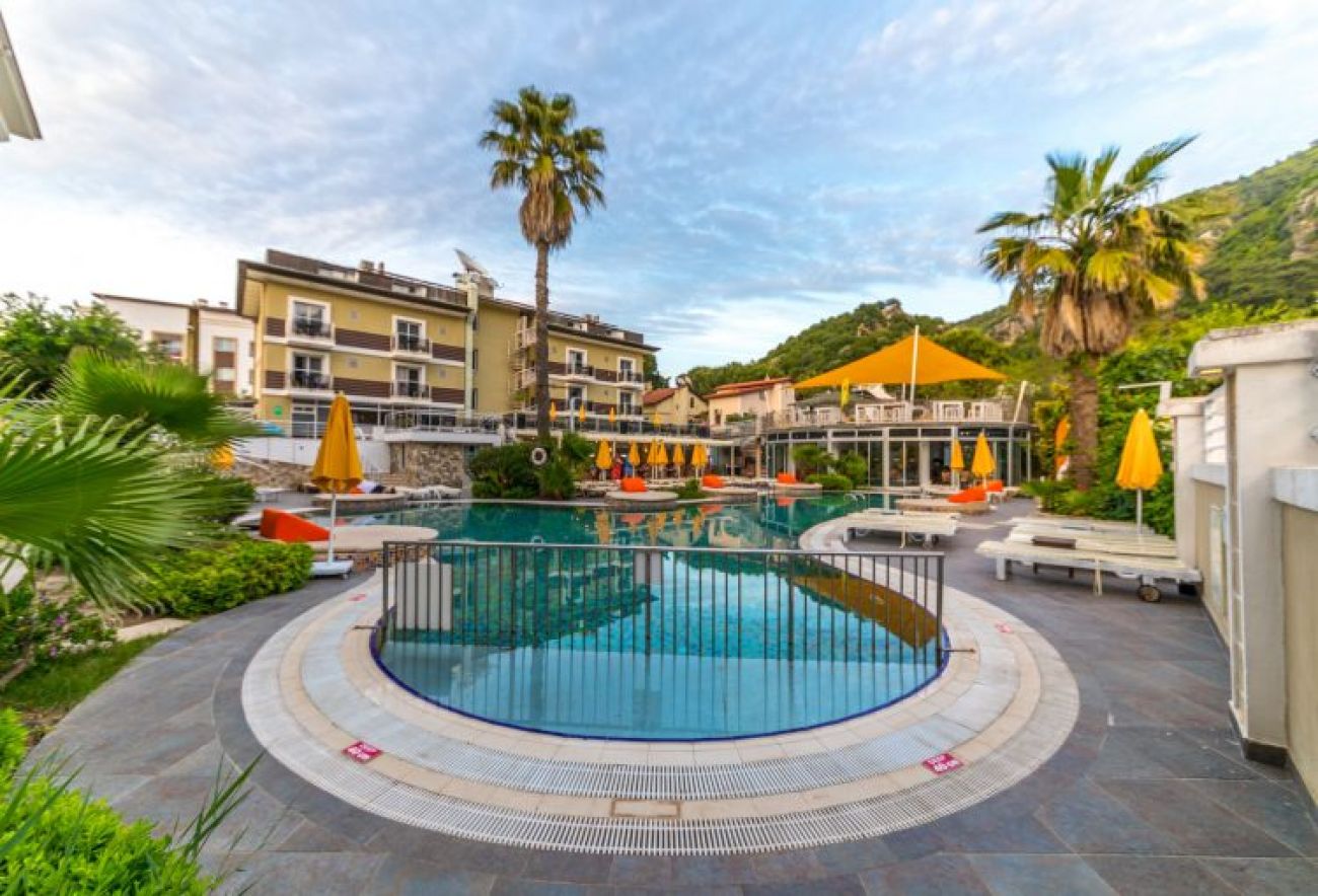 Разположен в Ичмелер, на 7 км. от центъра на Мармарис, на 150 м. от морето, градски плаж. На плажа: чадъри, шезлонги и матращи срещу заплащане