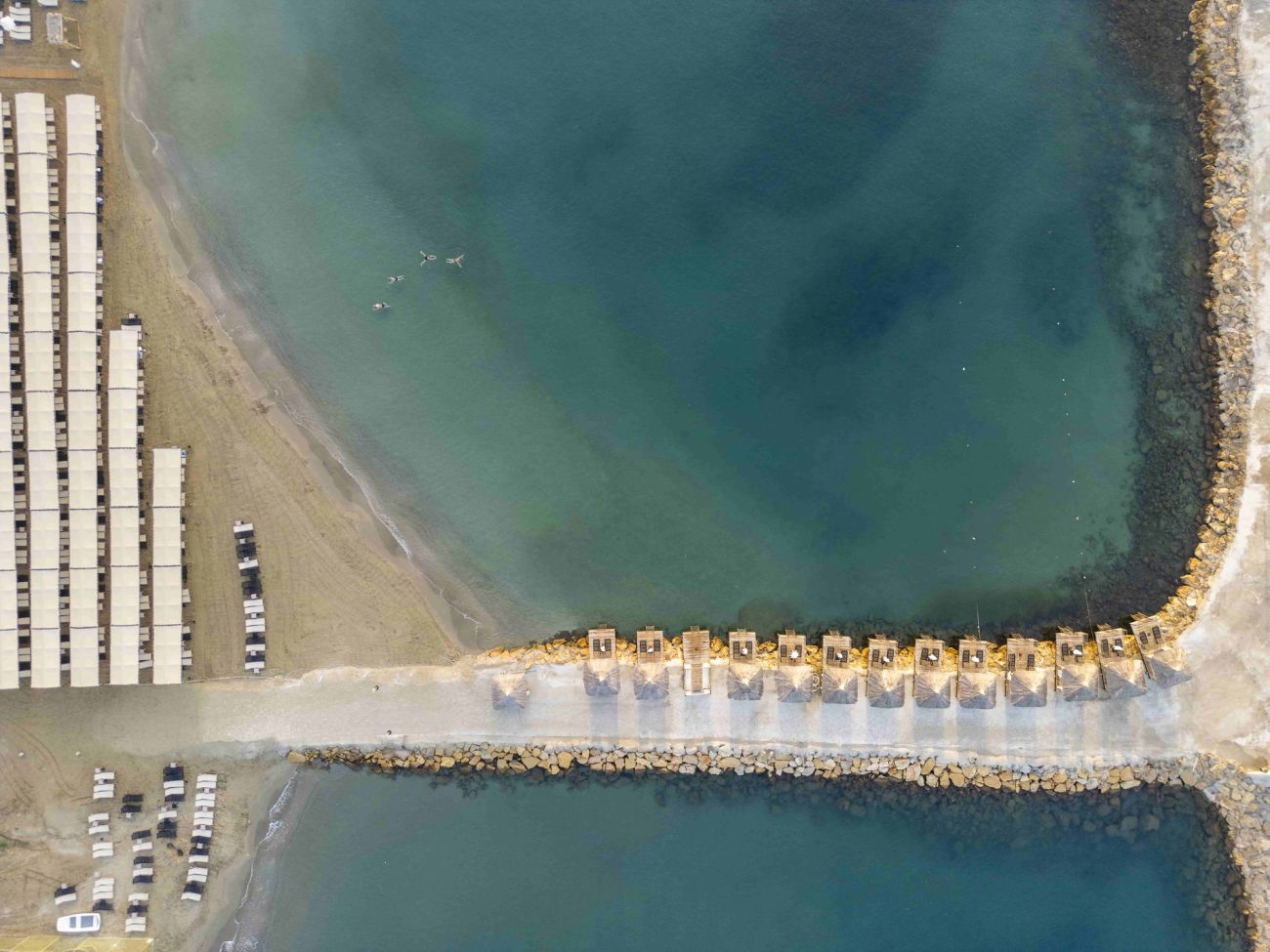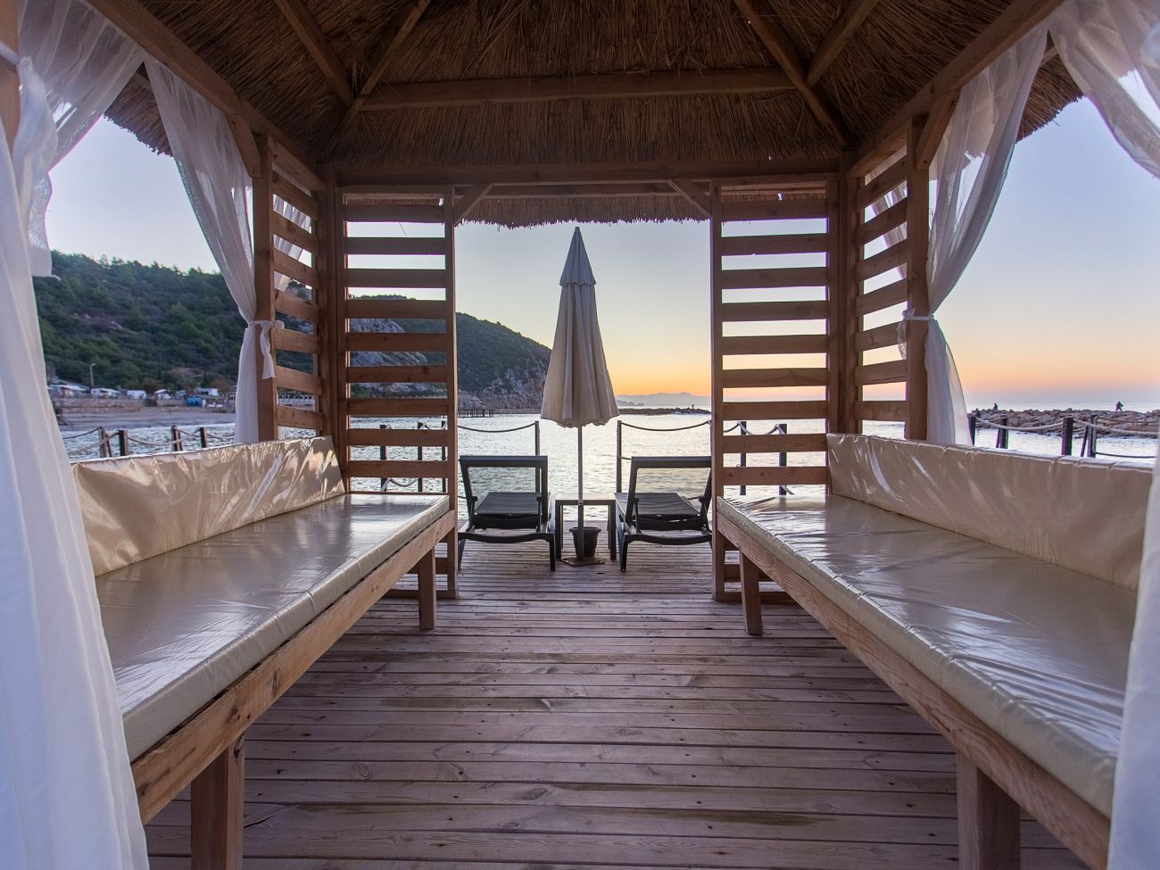 Собствен, пясъчно - чакълест, на 200 м от хотела. Чадъри, шезлонги и матраци на плажа и при басейна - безплатно. Плажни кърпи - безплатнo.