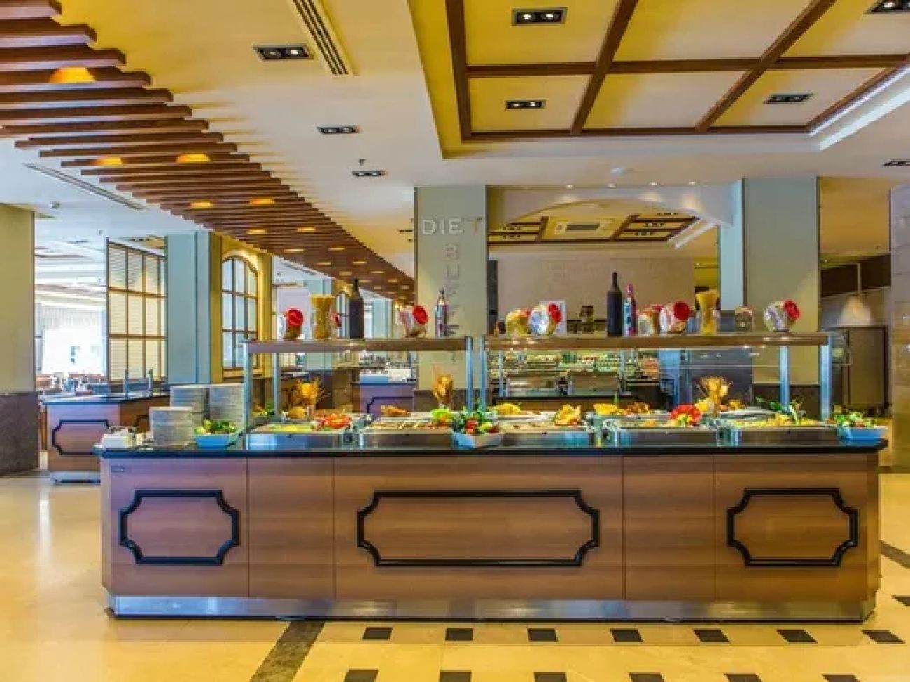 Основен ресторант, 2 а - ла - карт ресторанта (1 безплатно посещение за 7-дневен престой с предварителна резервация – рибен, турски), снек ресторант, сладкарница, 8 бара, 2 открити басейна, аквапарк с 5 водни пързалки, нощен клуб, СПА център, конферентна зала, Wi-Fi (безплатен на лобито на хотела). За децата: детски басейн, аквапарк с водна пързалка, детска площадка, мини клуб (4-12г.), сладолед, детско меню, детска кошара, детско столче, детска анимация. Безплатни услуги: Турска баня, фитнес, степ аеробика, водна аеробика, водно поло, тенис на маса, фитнес, ТВ стая, анимация. Платени услуги: Сауна, масаж, пилинг, джакузи, фризьорски и козметичен салон, магазини, химическо чистене, лекар, водни спортове, рент-а-кар.