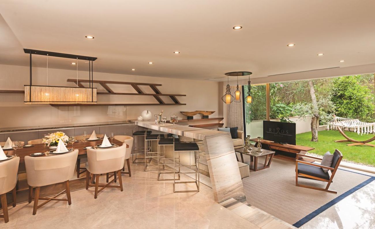 Villa Privé - обща площ 264 кв.м. - 4 спални, 1 хол и 4 бани, частен открит басейн, частна зона за слънчеви бани, частна градина, хладилник с безалкохолни напитки, индивидуален климатик, мрамор и килим, кухня, минибар във всяка стая, частен павилион на плажа, баня, душ, вана, 4 тоалетни, 5 телевизора, сателитна телевизия, музикално озвучаване, интернет.