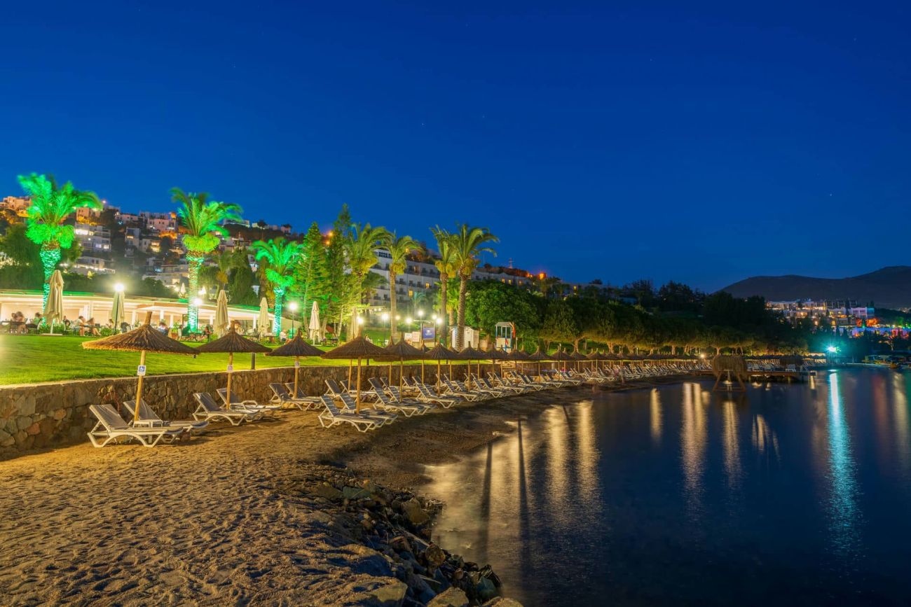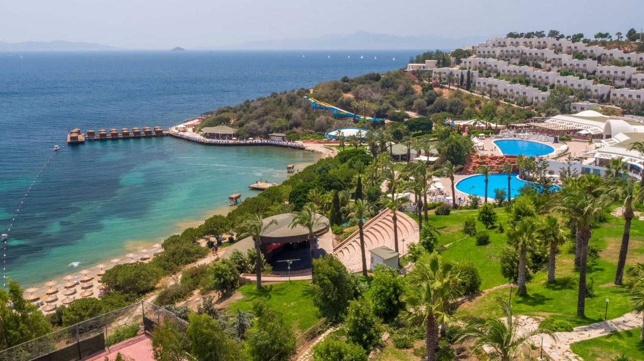 Хотелът се намира на 50 км от летище Милас, на 20 км от центъра на Бодрум, в района на Тургутрейс, на 5 км от центъра на Тургутрейс, на брега на морето. Разполага с обща площ 108 000 м², последна реновация през 2024 г.