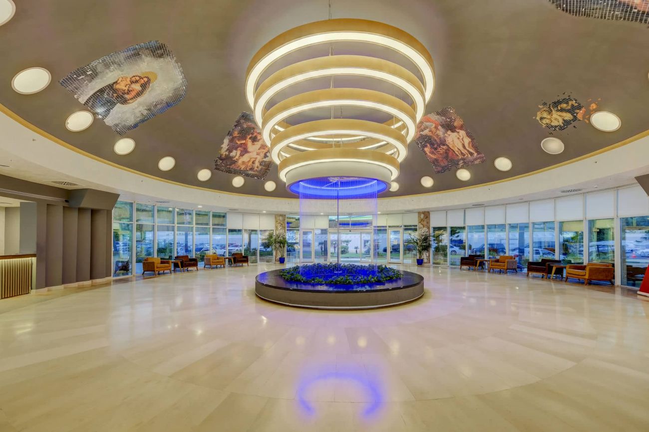 Хотелът разполага с основен ресторант Myndos, 4 а-ла-карт ресторанта (рибен Oceania, турски Sultan, италиански La Perla, световна кухня Ela Lounge; с предварителна резервация; едно безплатно ползване при минимален престой от 5 нощувки), 7 бара (Lobby Bar - който работи 24 часа; Coffe Corner, Arena Pool Bar, Central Snack Bar, Sultan Snack Bar, VIP Pier Cabana (платен) и VIP Beach Cabana (платен), 3 открити басейни (от които 1 релакс) и 1 закрит басейн със солена вода, 3 водни пързалки, анимация, СПА център с територия от 2500 м2, дискотека, магазини, 6 конферентни зали, паркинг, 24-часова рецепция, Wi-Fi (безплатен на цялата територия на хотела).