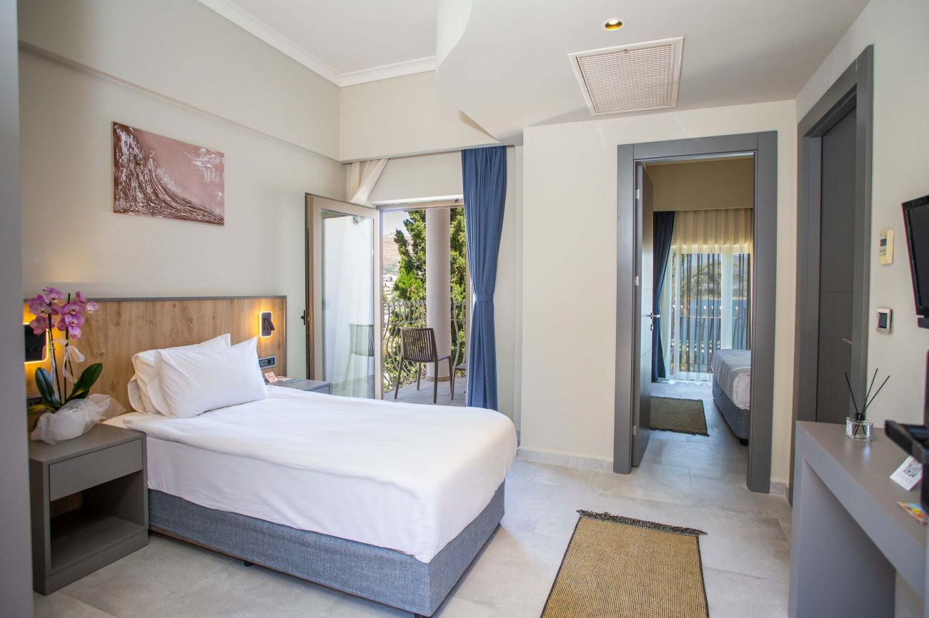 Хотелът се състои от една основна 6-етажна сграда (Main Building) с 2 асансьорa и 42 къщички на 2 етажа (Myndos и Club). Разполага с общо 460 стаи, от които 210 в основната сграда (Main Building Standard Sea View / Land View и Main Building Family Room /Main Building superior suite) и 250 в двуетажни къщи (Club Room Standard Sea View / Land View и Club Family Room). Стандартните стаи са с големина 29-33 м², а фамилните 38-40 м² и се състоят от 2 отделни стаи - спалня и всекидневна. Main Building Superior suite са с големина 60 м² и се състоят се от 2 отделни стаи - спалня, всекидневна и две бани, джакузи.