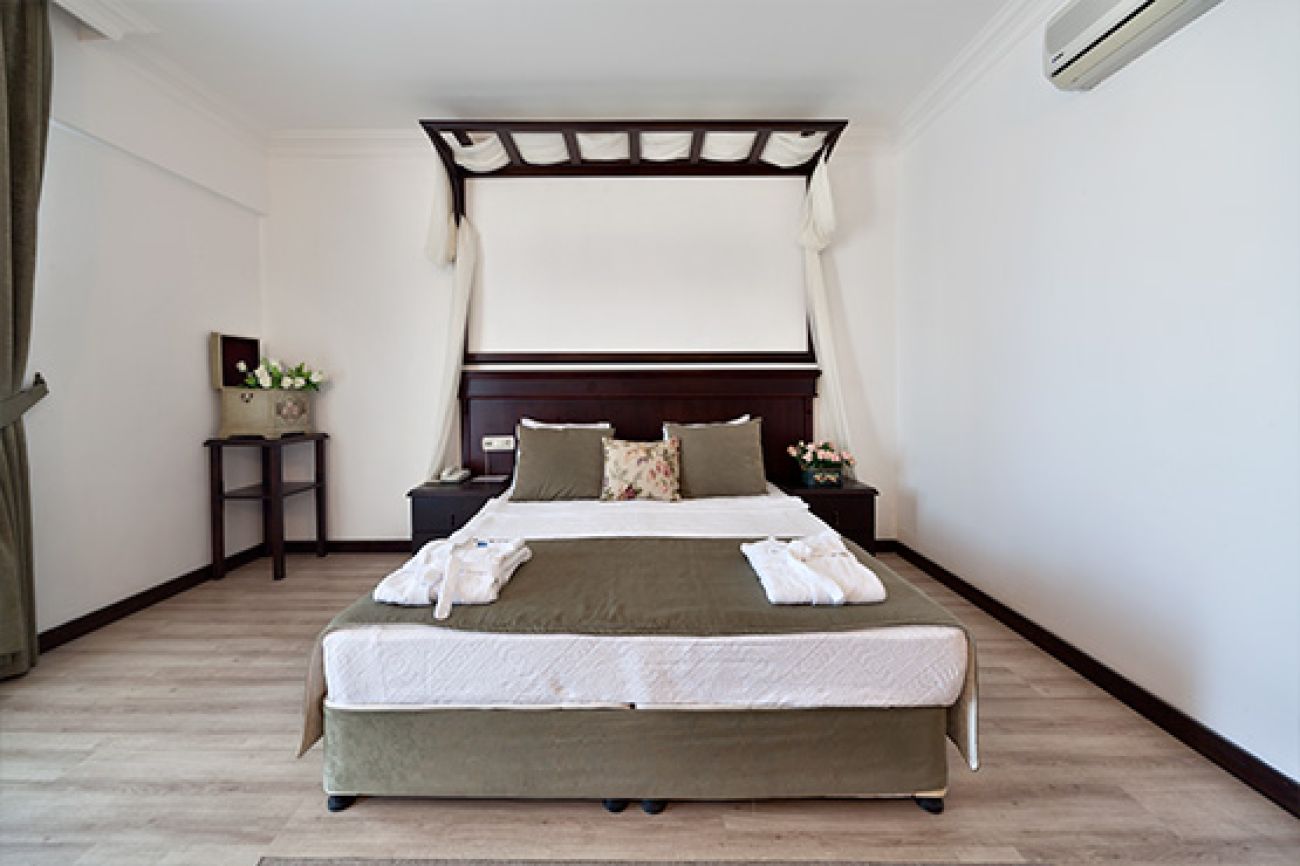 There are 3 blocks in Crystal. In block A , We have 82 rooms ,They are all standart and double rooms. ( 18 m2 ), In Block B , We have 67 rooms , They are 25 m2 and suitable for 4 pax .Block C ,has 18 rooms , and again 25 m2 and suitable for 3 and 4 pax.In all rooms we have direct telephone , LCD Tv , AC , Mini Bar ( Charge ) , Hair Dryer , Balcony . Most of The rooms have Sea view the others also have beautiful Garden view.