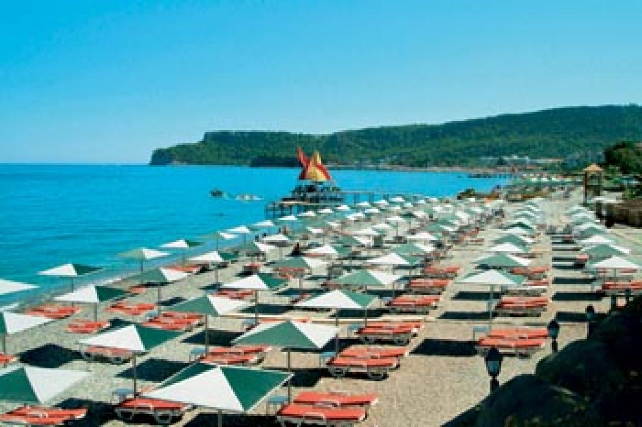 Хотелът се намира на 50 м. от морето, в Кемер, собствен плаж – пясък, чакъл , до който се стига по подземен проход