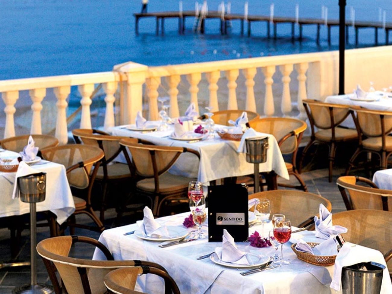 Хотелът предлага основен ресторант, ресторант A La Carte (рибен, 5 пъти в седмицата, с предварително записване - безплатно и )и барбекю- предварителна резервация -платено), 2 бара, 3 открити басейна, 4 водни пързалки, лекарски кабинет, пералня, обмен на валута.