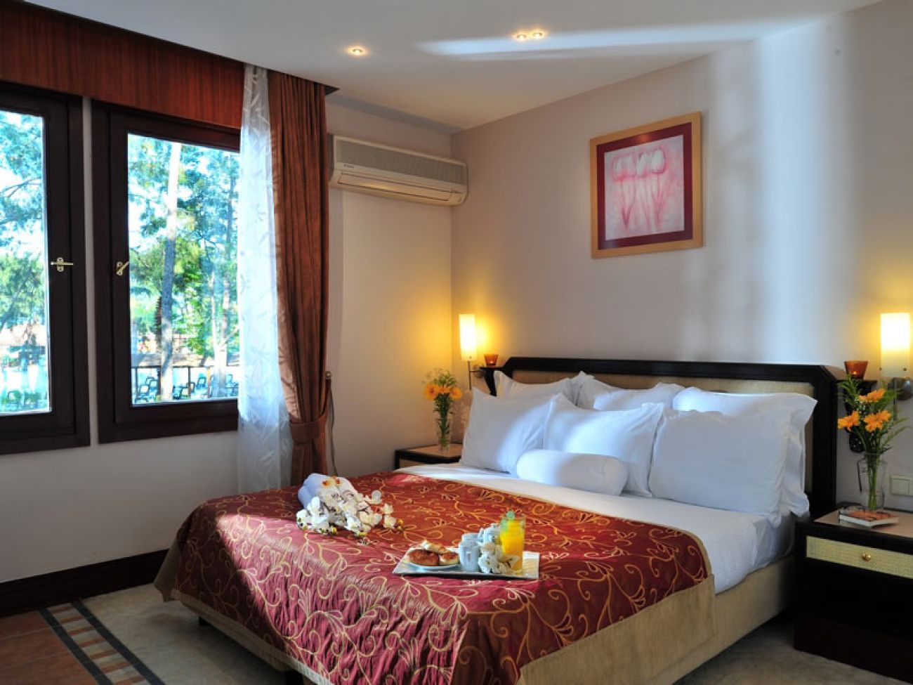Стаите са оборудвани с вана, халат и чехли, сешоар, централен климатик (в основната сграда), индивидуален климатик(вили), телевизор, телефон, мини-бар (безалкохолни напитки, бира - попълване ежедневно), сейф (в стаята, безплатно), под – мокет (основна сграда), мрамор (във вилите), балкон или тераса, почистване на стаите – ежедневно, смяна на спалното бельо - 3 пъти седмично, room service (24 часа, платено).