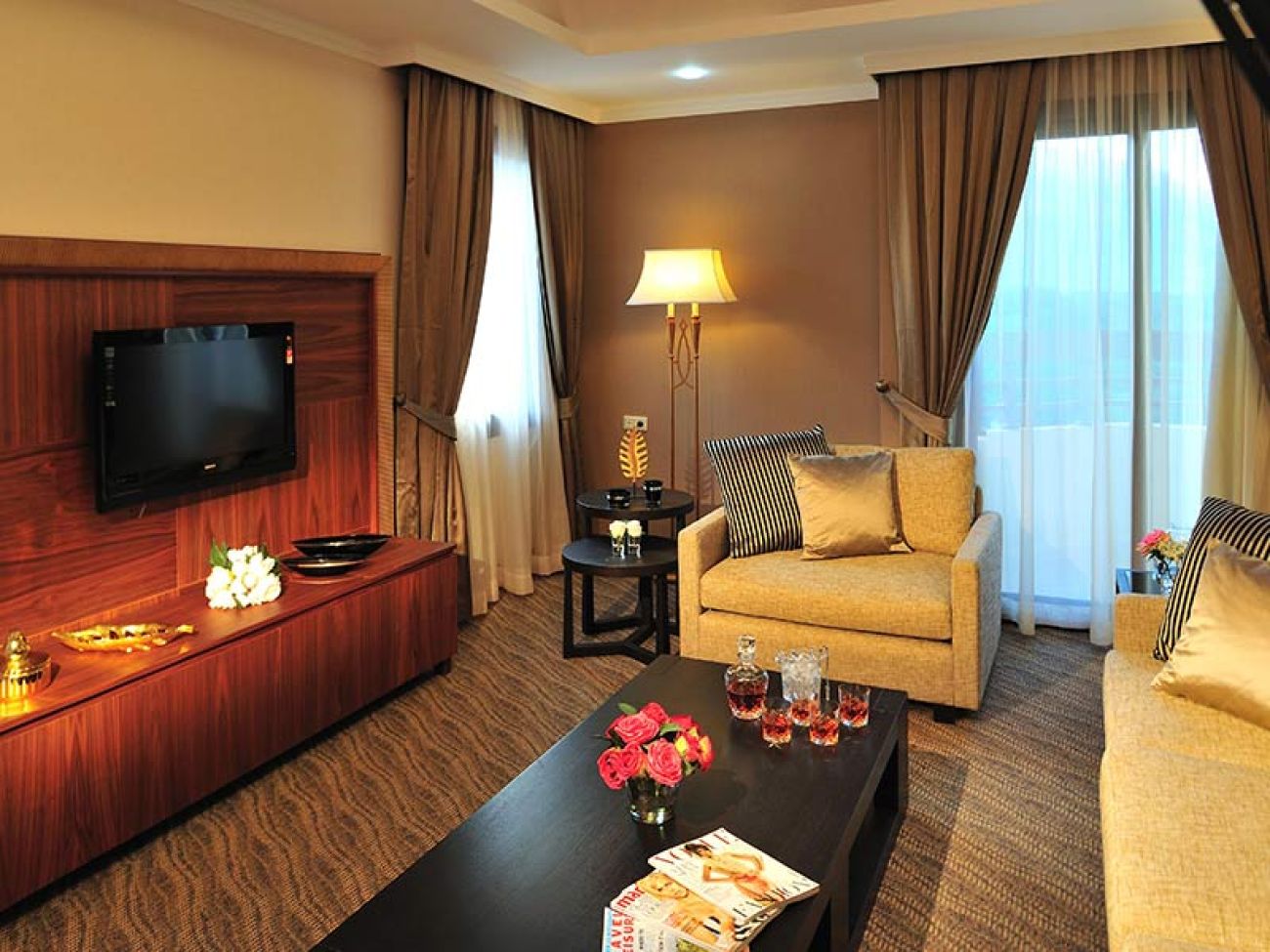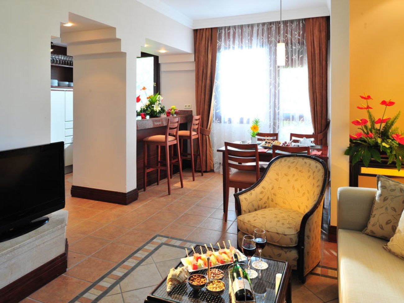 2 двустайни executive family suite (хол, спалня с врата, вана и душ, 2 телевизора, 2 тоалетни, макс. 3+1 чов., 75 м2);