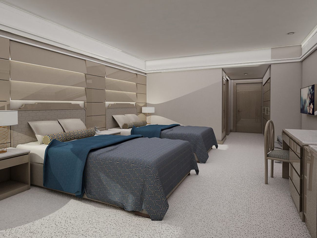 2 двустайни executive deluxe suite (хол, спалня с врата, вана и душ, 2 телевизора, 2 тоалетни, изглед към морето, макс. 3+1 чов., 75 м2);