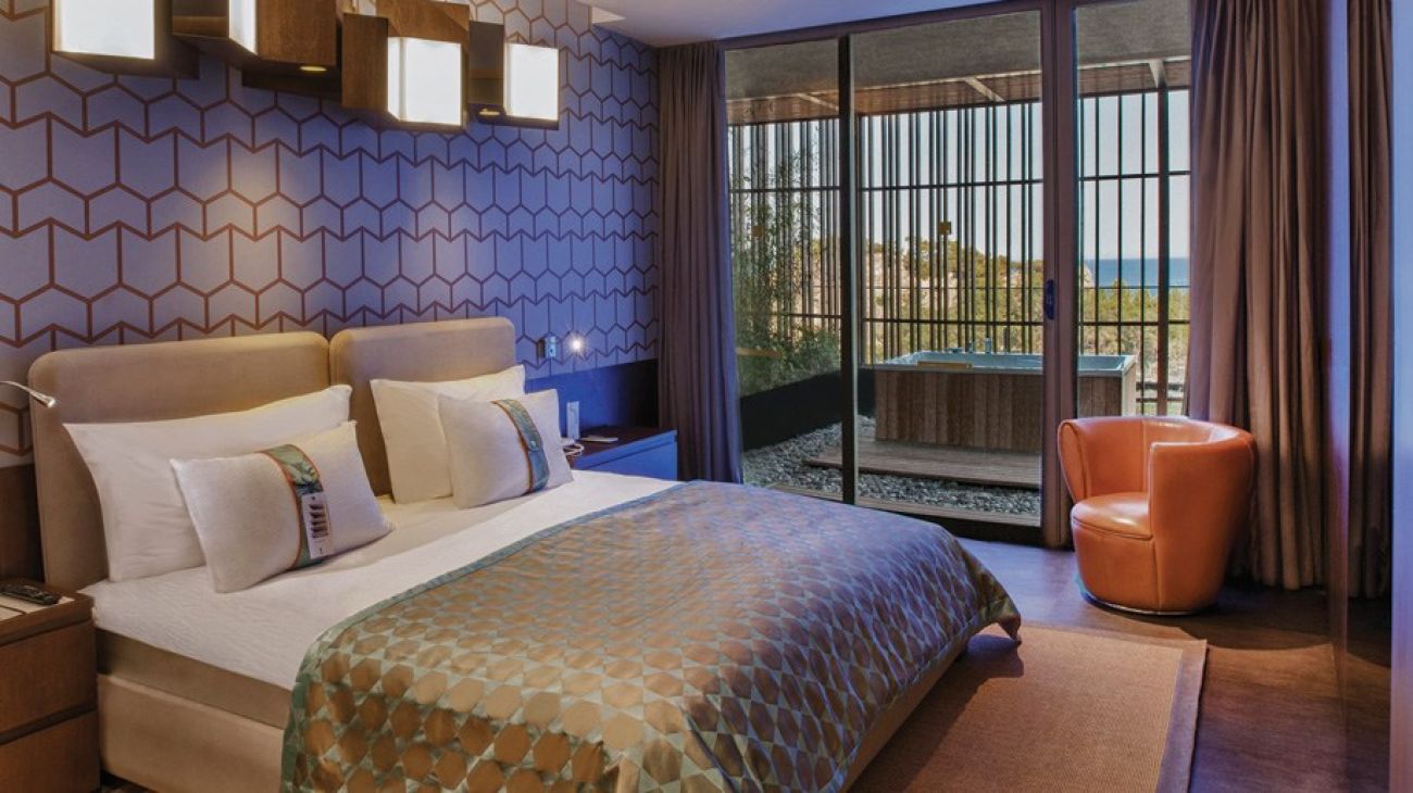 - 23 двустайни junior suite sea view (хол, спалня, баня с душ и джакузи, тераса, макс. 6+1 чов., 68 м2).